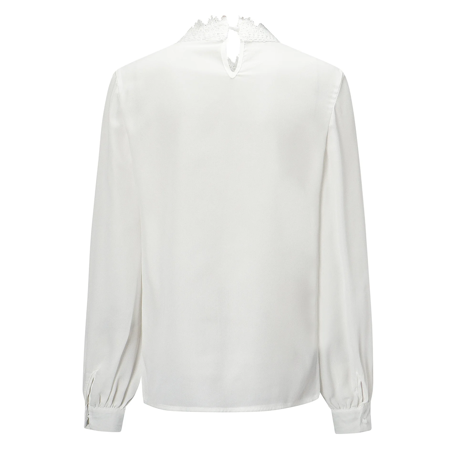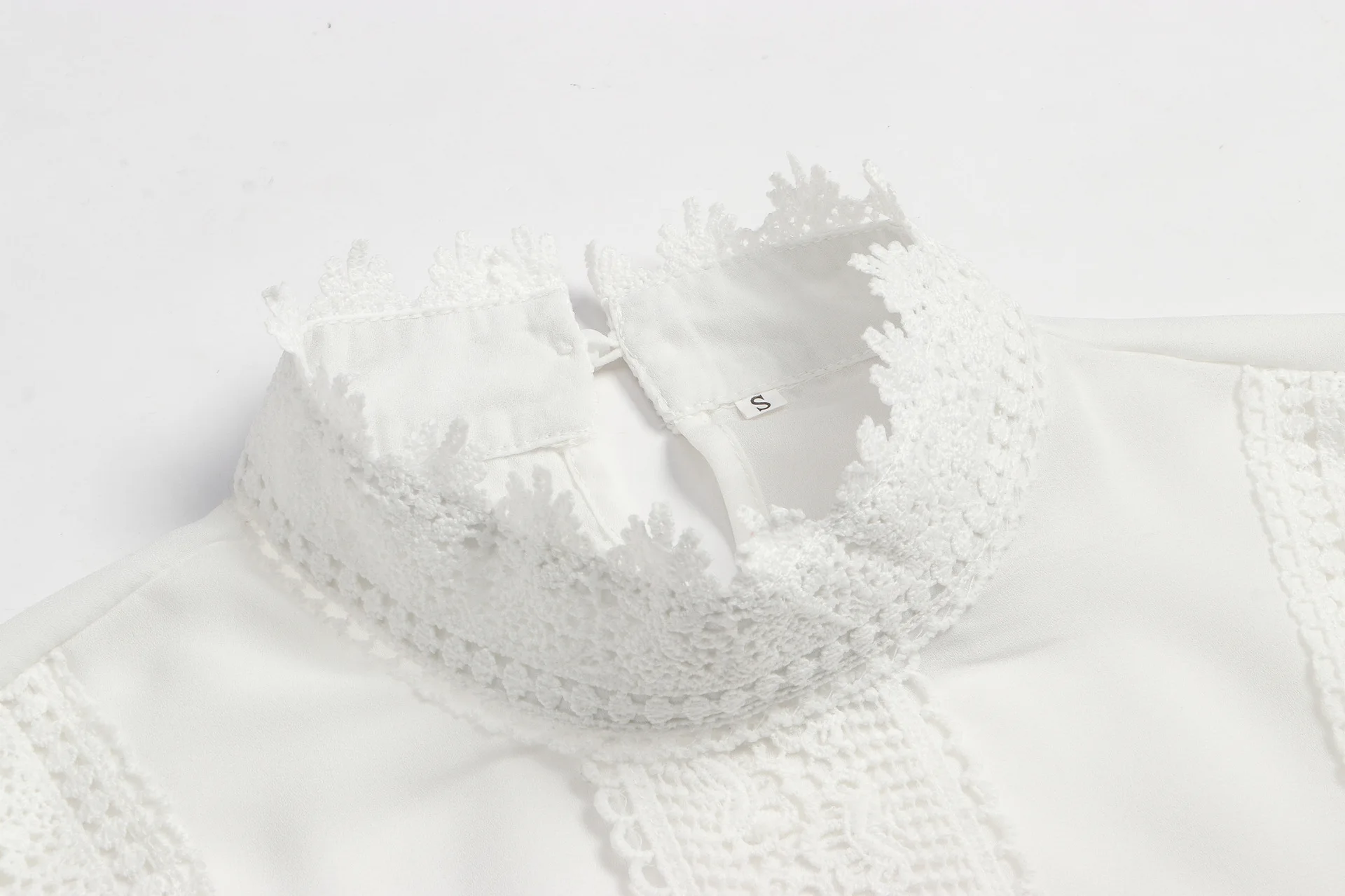 Отзывы о Женская кружевная блузка элегантная белая прозрачная офисная рубашка с круглым