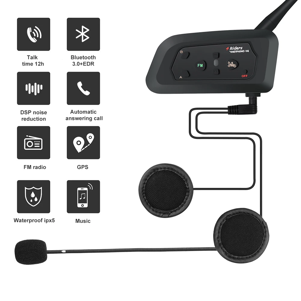 Отзывы о 2 шт. Vnetphone V4 Moto rcycle домофон шлем Bluetooth гарнитура kask Интерком moto FM радио 4 всадника