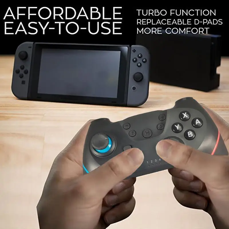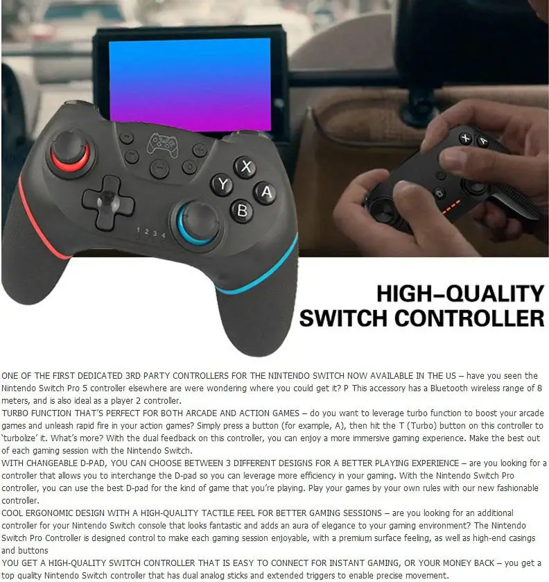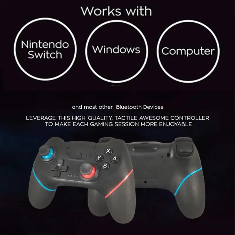 Описание: Этот продукт относится к беспроводной (Bluetooth) ручке управления Switch Pro, с функцией TURBO, поддерживает двойную вибрацию двигателя, соединенную с хостом переключателя, И также совместим с ПК Хост (система XP и выше), может быть применен для рук сильного бокса, Марио гонки 8, легенда о Зельде, И другие элементы управления, позволяют испытать ощущение погружения во время игры;