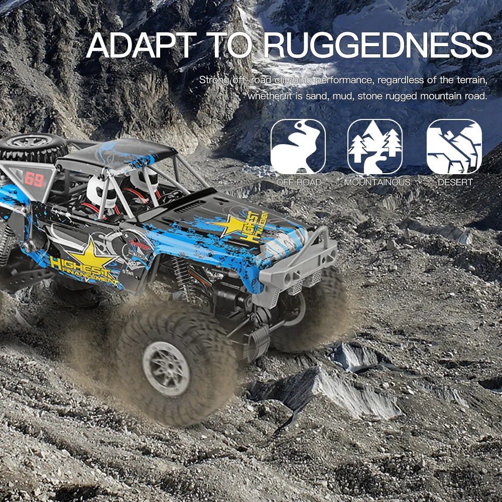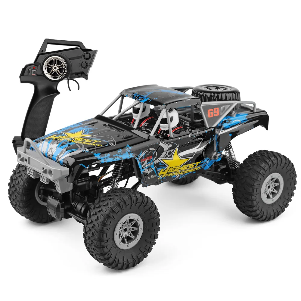 Wltoys 104310-Радиоуправляемый автомобиль с высококачественными резиновыми шинами, мощным амортизатором, двойным мотором и высоким шасси, что делает его мощным радиоуправляемым багги.