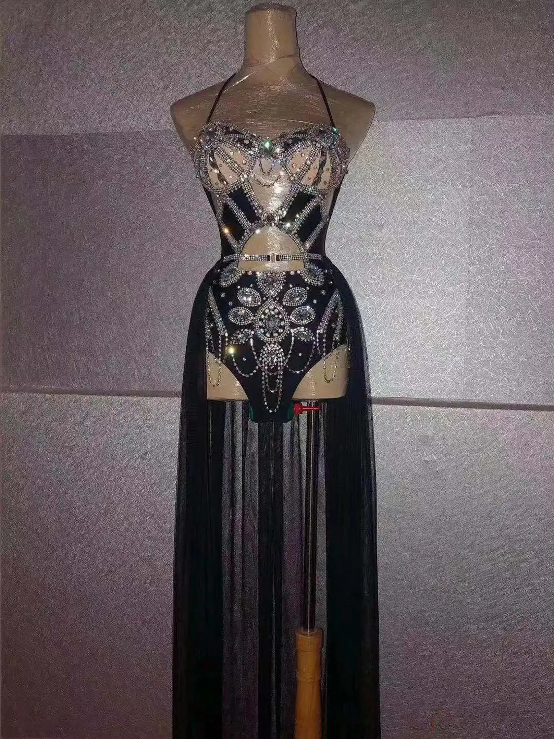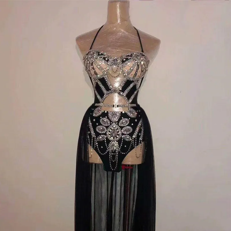 Отзывы о Блестящее черное боди Стразы со шлейфом танцевальная юбка Женский сценический