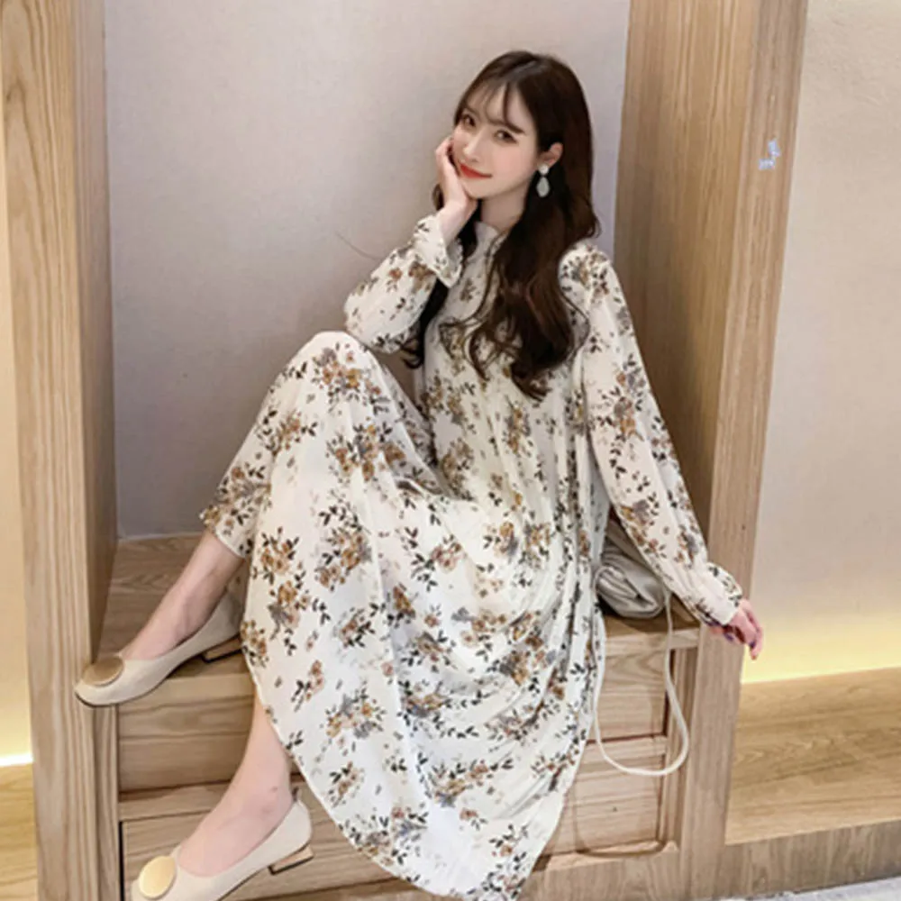 Отзывы о Женское шифоновое платье с поясом длинным рукавом и цветочным принтом Женская