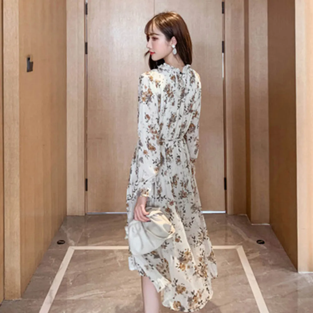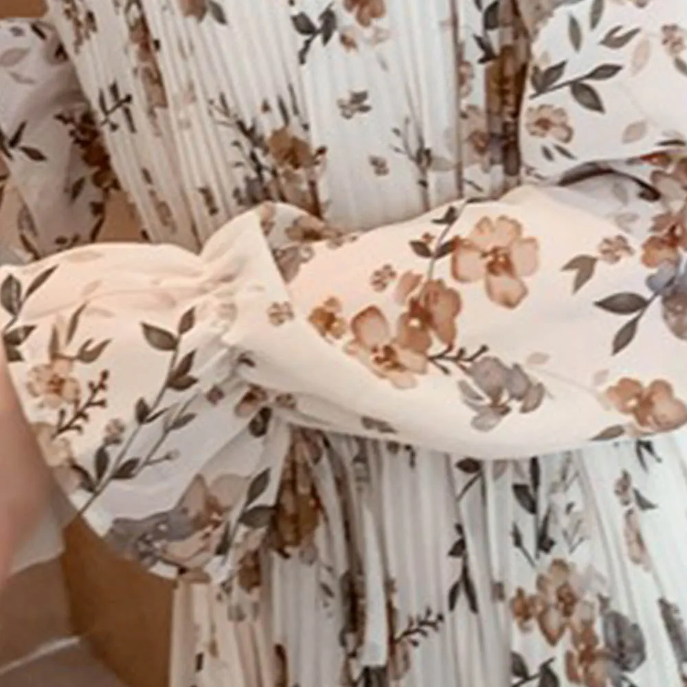 Купить Женское шифоновое платье с поясом длинным рукавом и цветочным принтом | Женская