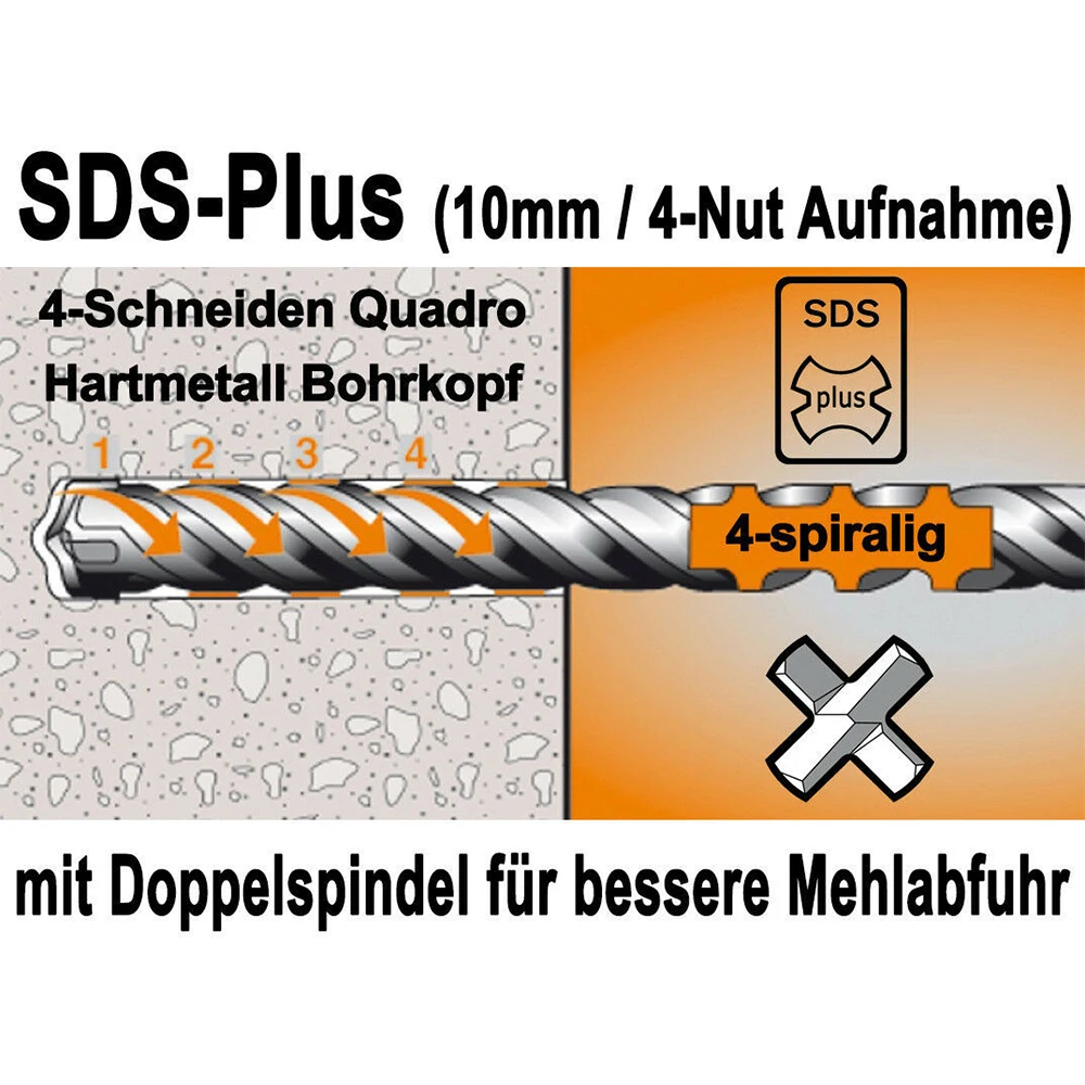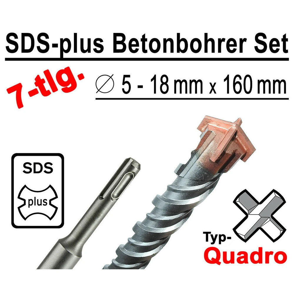 ** 7 шт. SDS-plus Quadro Бетона Сверла в Ø 5 - 18 мм x 160 мм Общая длина. Есть двойные сверла.