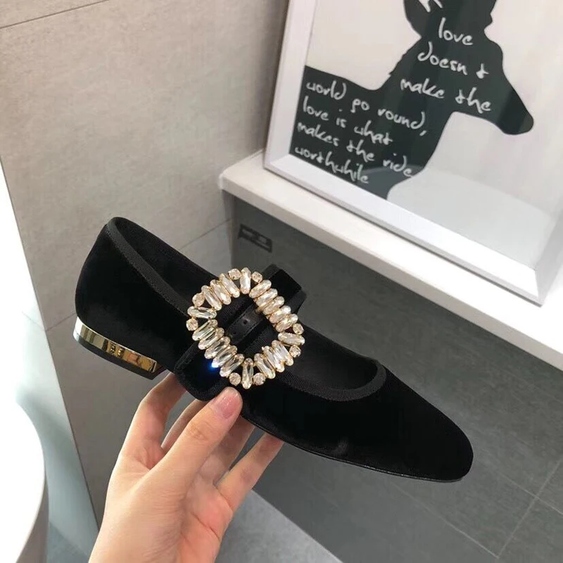 Black Suede Women Shoes 2020 Brand Mary Janes Flats Woman Loafers Square Toe Zapatos de Mujer Crystals Chaussures Femme Обувь - купить