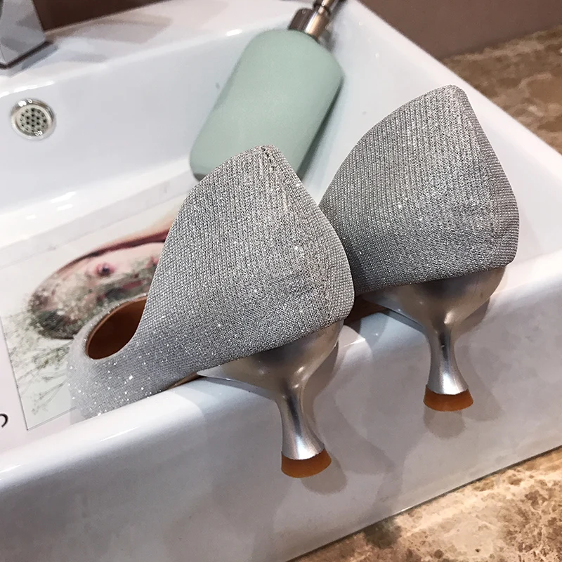 Блестящие вечерние туфли на высоких каблуках расшитые блестками женские - купить