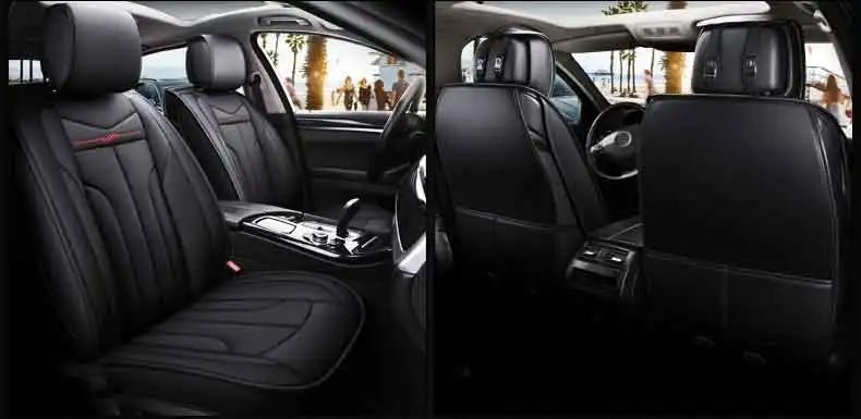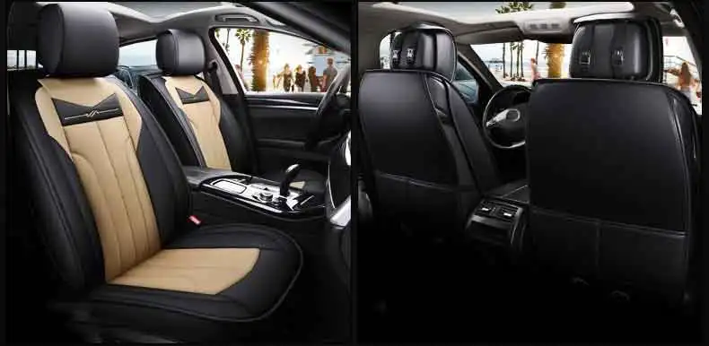 1,Made of high-quality artificial leather, it is wear-resistant and easy to clean. 2,The side is anti-skid, fixed. It reserves for the airbag outlet. It does not affect the original car function, safe and secure. 3,If there is a armrest on the rear seat backrest,the seat cover doesn't affect it.The rear row is a split design that can be adjusted to the seat size. 4,It is simple to install,doesn't need professional experience,one person could compelete in 20 minutes.There are belts under the seat cover,so it can't move. 5,It is universal,fits most of 5-seats cars,suv,pick-up,trucks which have separate headrest. 6,It doesn't fit MPV whose seats are arranged to 2+2+3,or the rear seats are individual.If you have a SUV which has 7 seats,after folding the third row seats,there is no problem. 7,If there are some situations,it doesn't fit too,for example,there is a TV or table on the seat back,the rear seats are only for 2 persons,the rear seats have no headrest. 8,The bottom of seats, seat back and rear seats are whole surrounded. It comprehensively protects your car seat from damage. The overall effect is stylish and nice-looking.