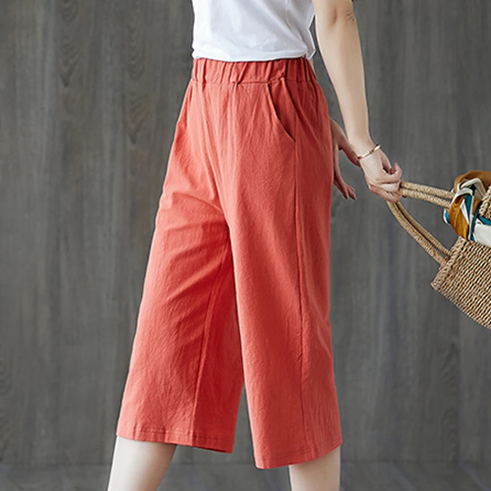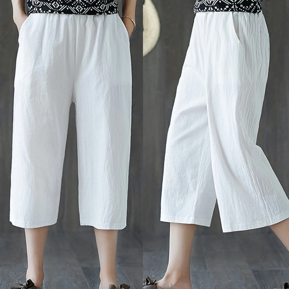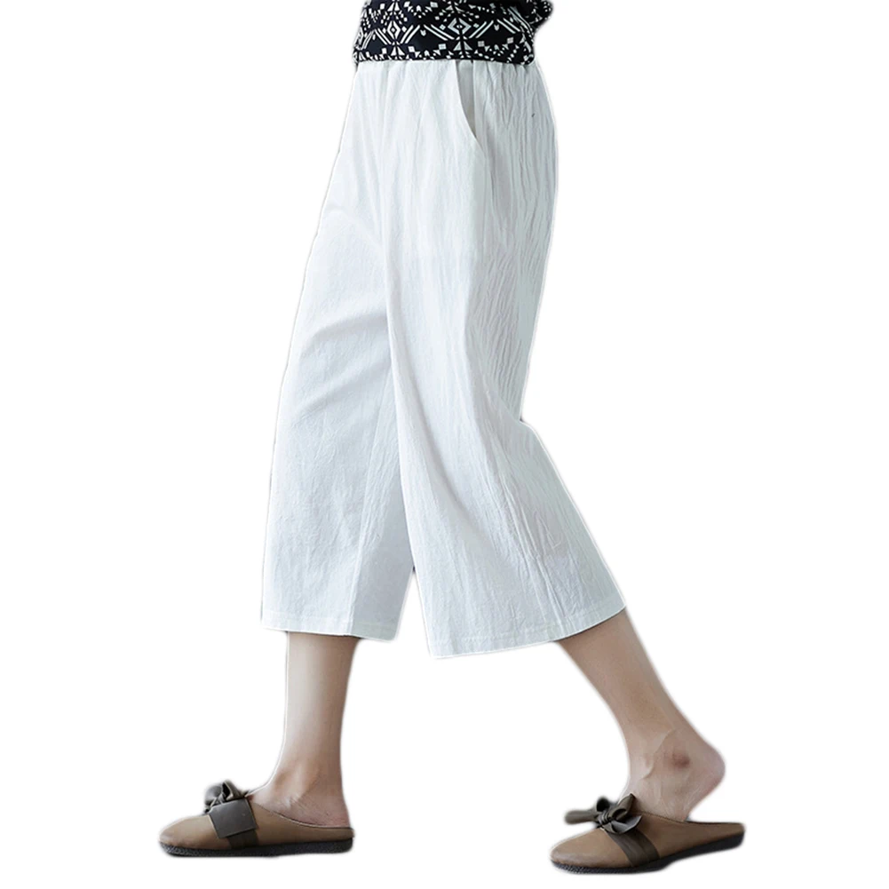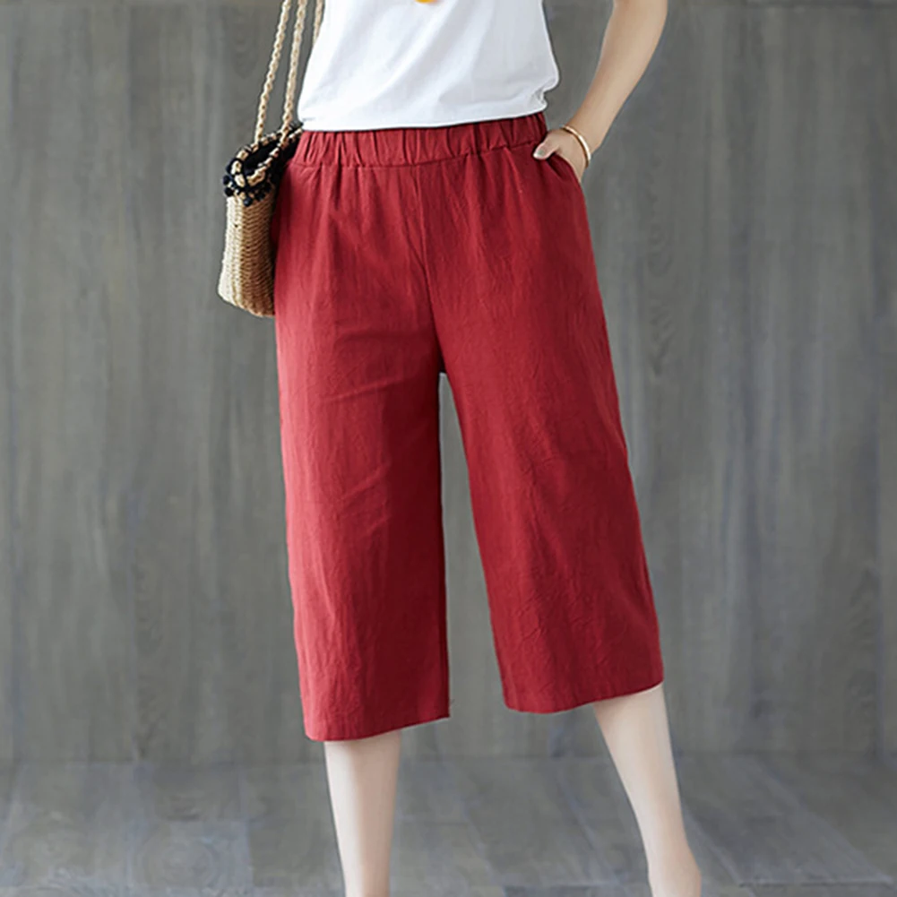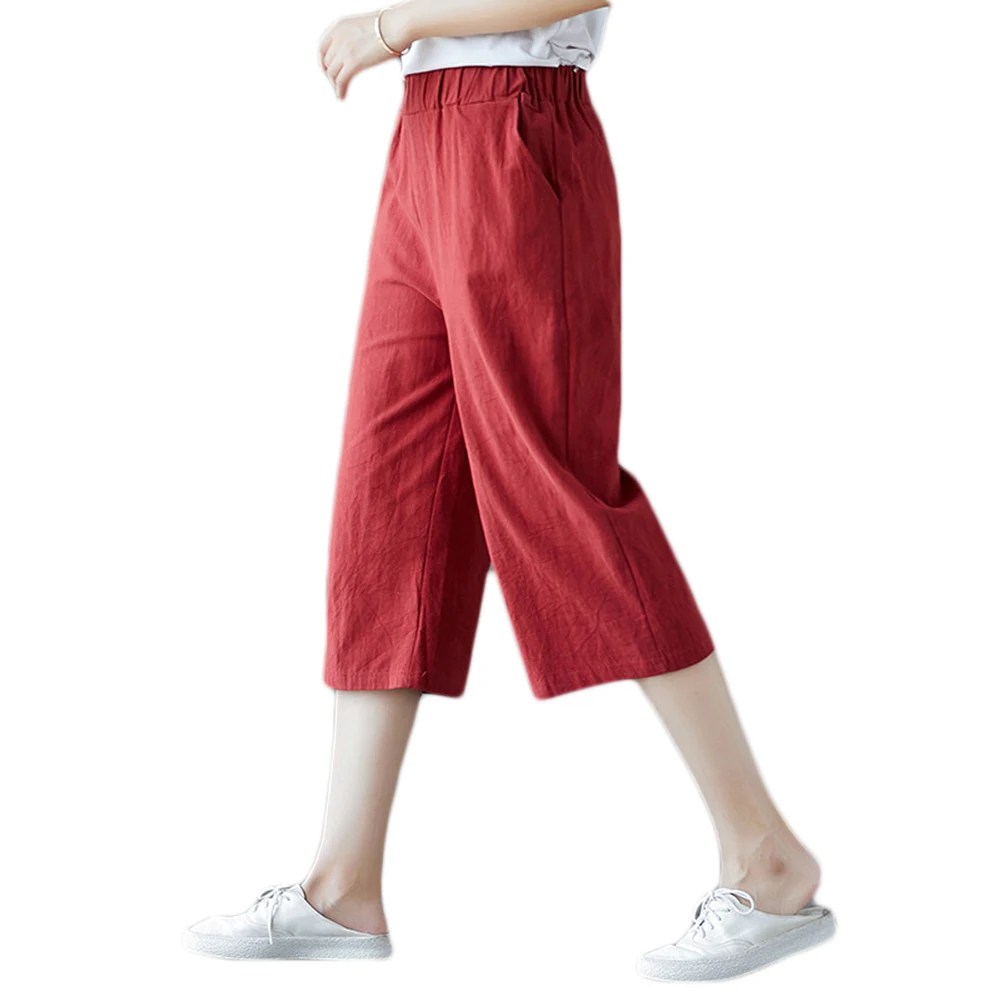 Летние женские эластичные свободные широкие прямые однотонные Капри брюки