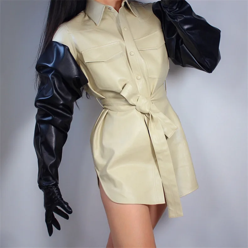 Экстра длинные кожаные перчатки 85 см большой рукав широкая манжета воздушный шар пышные рукава искусственная кожа белая эластичная повязка Мужская Женская WPU181
