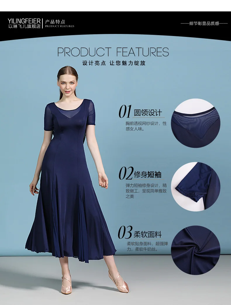 Купить Женская тренировочная одежда для бальных танцев, платье для современной практики бальных танцев с крыльями, вальс, танго, социальные формы, модель MY814.