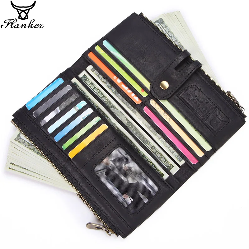 Отзывы о Flanker Men Clutch Wallet Genuine Leather Long Cell Phone Fashion Purse With Card Holders Zipper Coin Pocket portemonnee Багаж и сумки