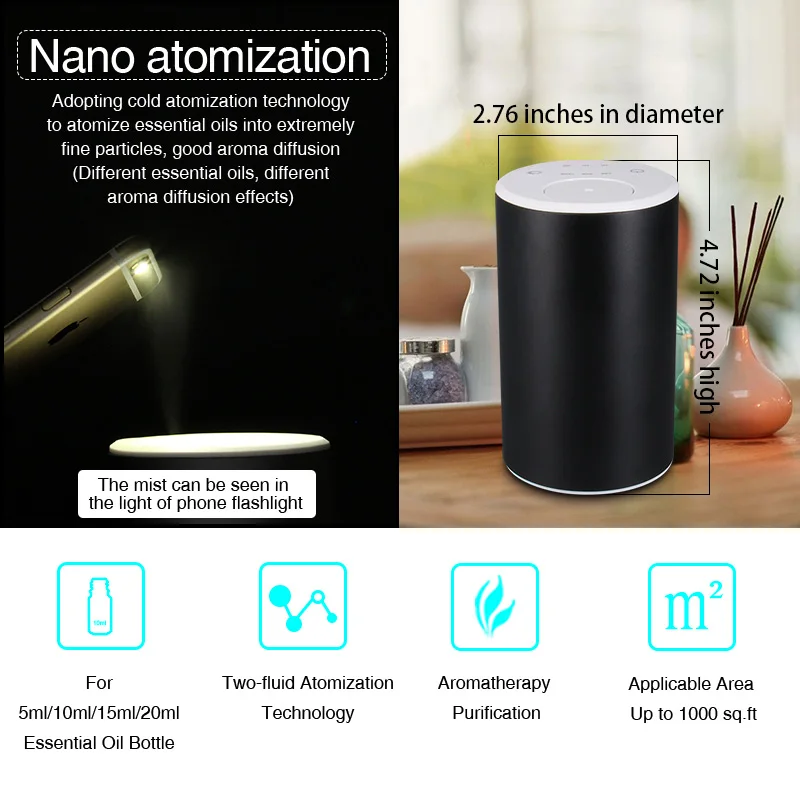 Это новый диффузор 5 поколения NC10 недавно запущен MEETA, который превосходит многие безводные диффузоры на рынке: 1. Решение общей проблемы подключения сопла, вызванной использованием смешанных эфирных масел/составных эфирных масел/эфирных масел с высокой вязкостью/эфирных масел 2. Решены болевые точки диффузора воздушного насоса, который не подходит для дома, спальни, студии, учебы и т. д. 3. Решить скрытые проблемы старой машины B1 / S1 / N098 / N093 / N068 из-за возврата эфирного масла. 4. Решить проблему потребителей/продавцов/ароматерапевтов, потому что они должны использовать различные емкости эфирных масел (5 мл/10 мл/12 мл/15 мл/20 мл) 5. Решить явление, что распыление недостаточно хорошо, и рабочий стол сохранит молекулярные частицы эфирного масла. 6. Это решает проблему, что пространство, используемое обычным домашним диффузором/диффузором, слишком мало. NC10 подходит для квадрокоптера с дистанционным управлением 60-80 m2