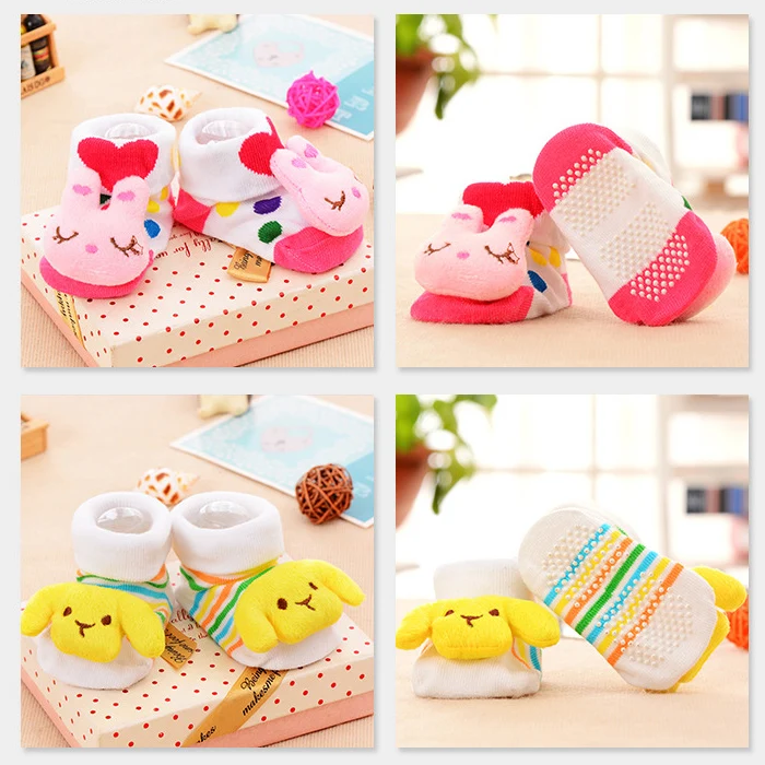 100% новый товар высокого качества. Материал: смесь хлопка Пол: для маленьких девочек и мальчиков Противоскользящие носки с изображением животных очень милые и мягкие носки сохраняют ваш ребенок мягким и теплым. Размер подходит для детей 0-12 месяцев (7-9 см) Примечание: 2. Из-за разницы между различными дисплеями изображение может не отражать реальный цвет изделия. 1 пара детских носков