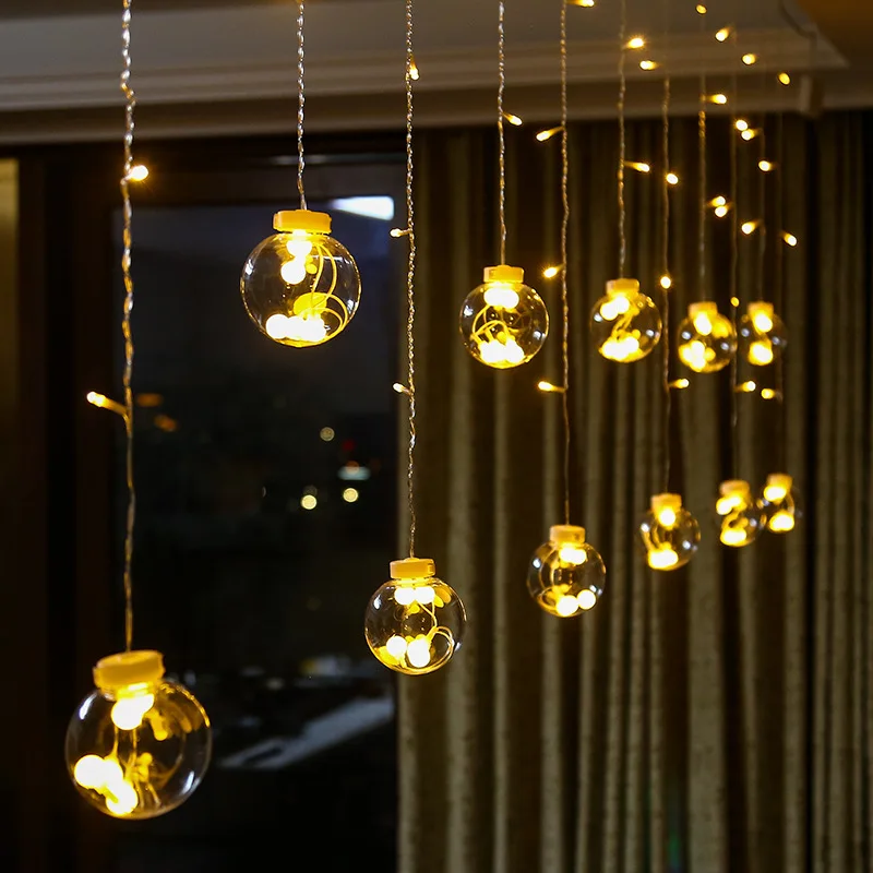 Светодиодная гирлянда, медная проволока, звездная Хрустальная занавеска, лампа с европейской вилкой, для улицы, свадьбы, вечеринки, Рождества, сказочный комнатный шар, световая гирлянда