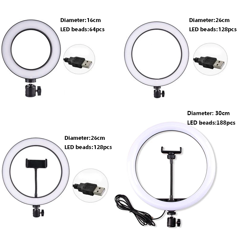 Светодиодное кольцо-вспышка диаметром 16 см 26 и 30 с мини-штативом для освещения фотографий видео блоггеров трансляций в режиме прямого эфира - купить