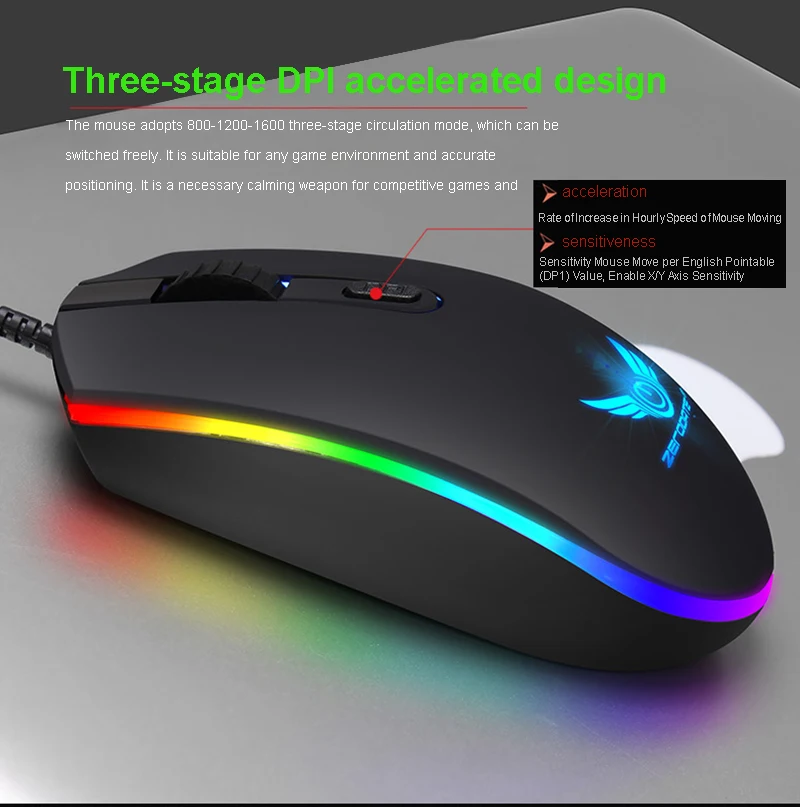 ZERODATE V6 USB Проводная мышь светодиодный яркий с дыханием 1600DPI оптическая мини-мышь - купить