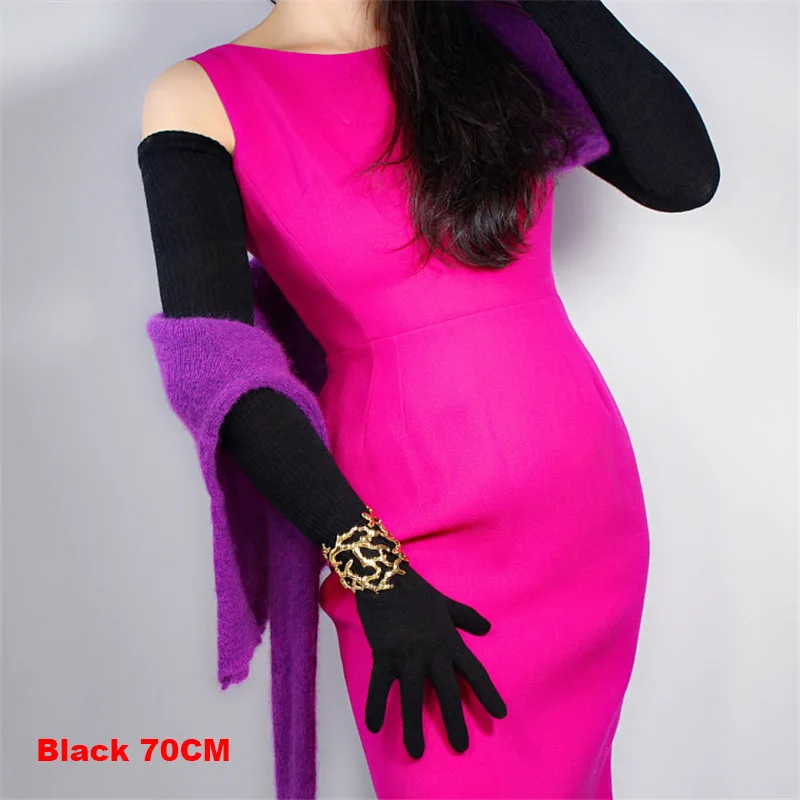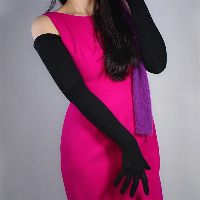 Купить Очень длинные шерстяные перчатки 70 см вязаные с пятипальцевыми эластичными