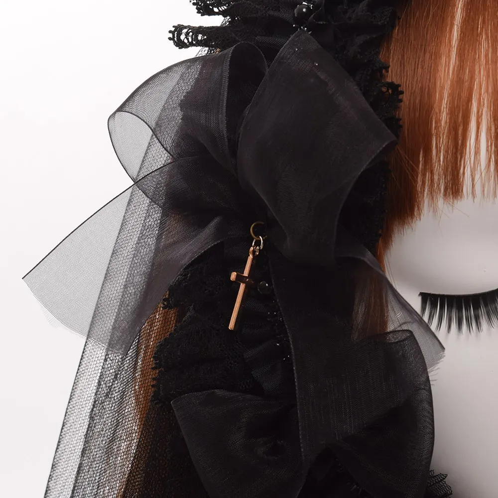 Отзывы о Черные модные готические высокие вязаные кружева завесу повязка на голову
