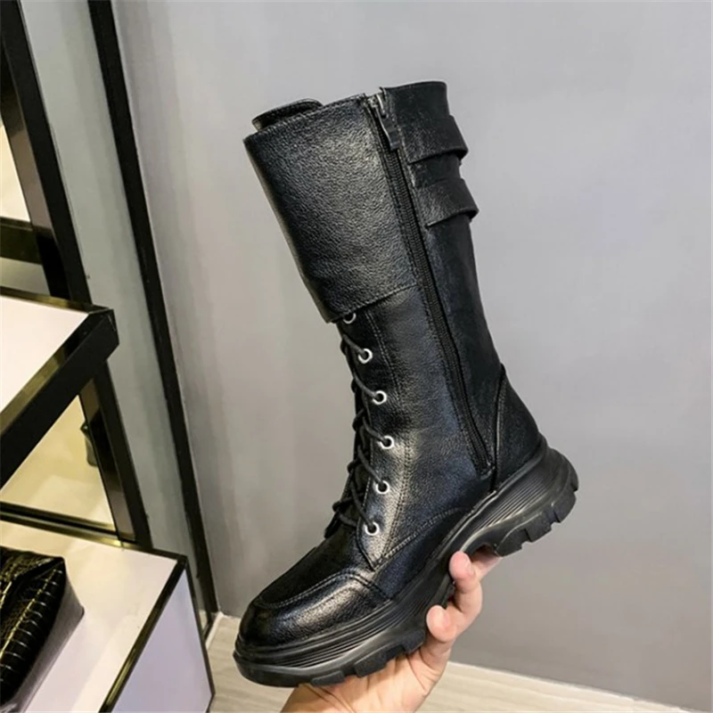 Мотоциклетные ботинки черная кожаная зимняя обувь женские на платформе с - купить