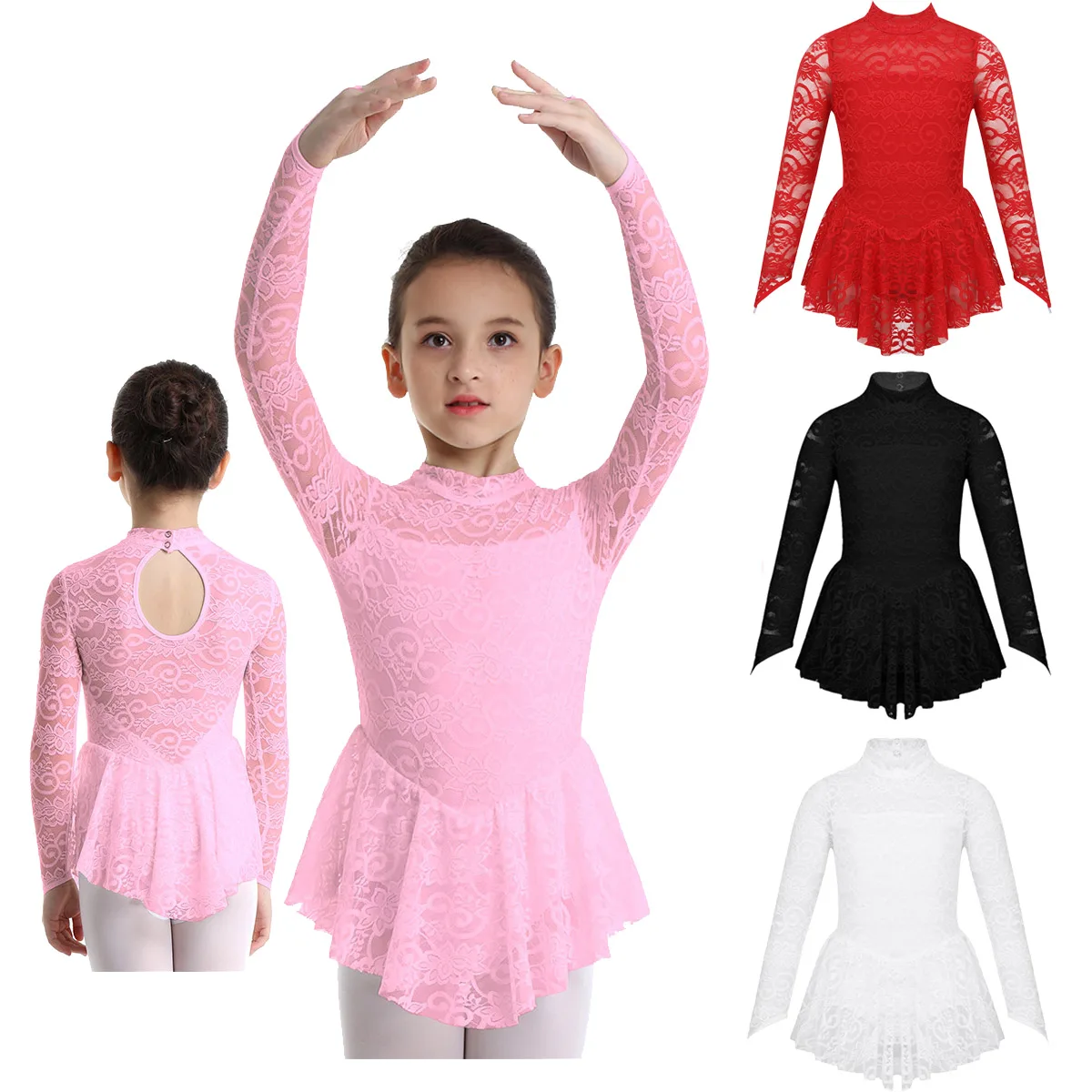 1 слойная эластичная кружевная юбка с цветочным рисунком прикрепляется к талии. Красивая Одежда для танцев для вашей девочки.