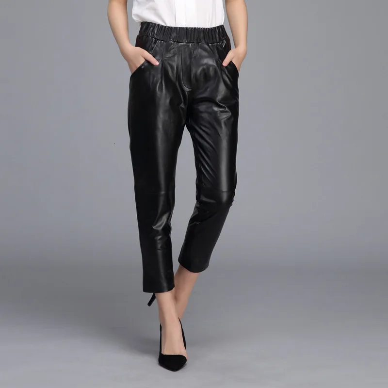 Высокое качество новинка 2020 прямые женские брюки из натуральной кожи - купить