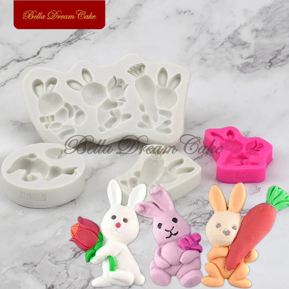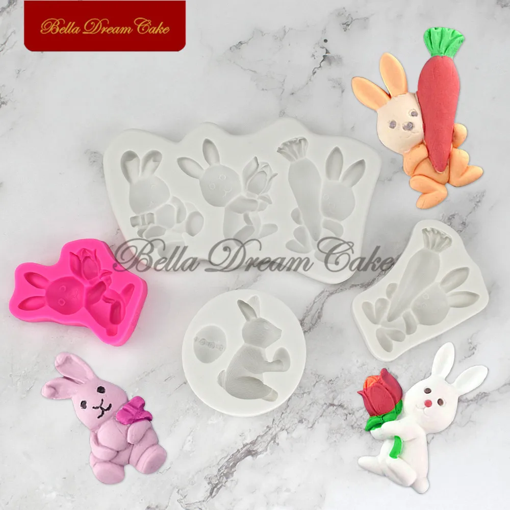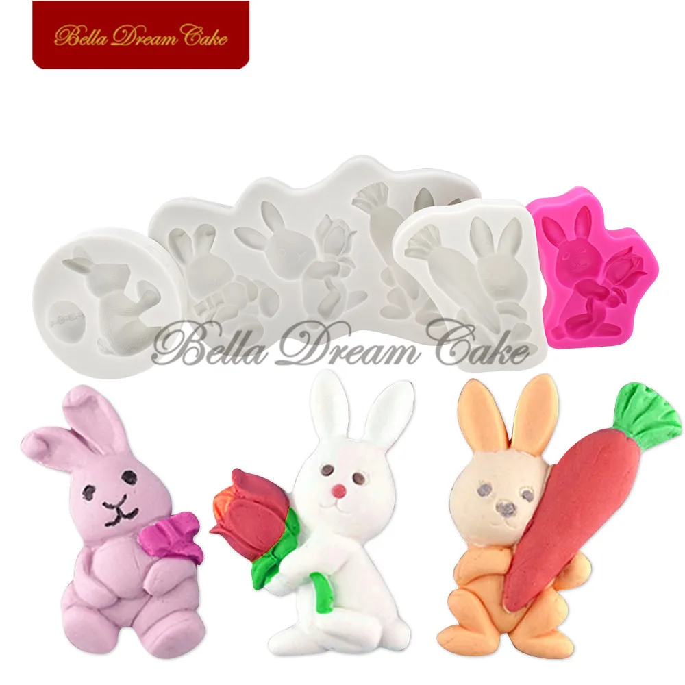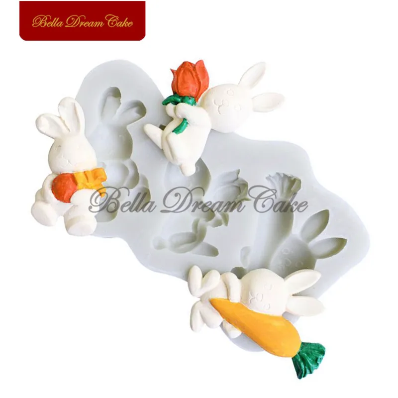 Пасхальное яйцо Кролик с морковкой цветок силиконовая форма торт границы формы Кролик Форма для шоколада украшения торта инструменты для выпечки