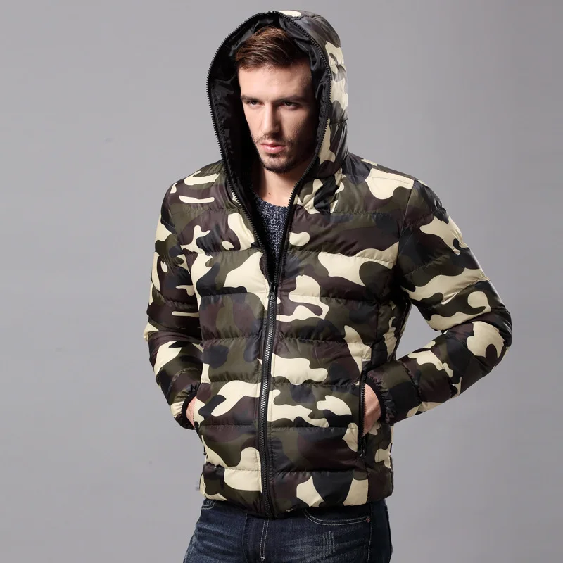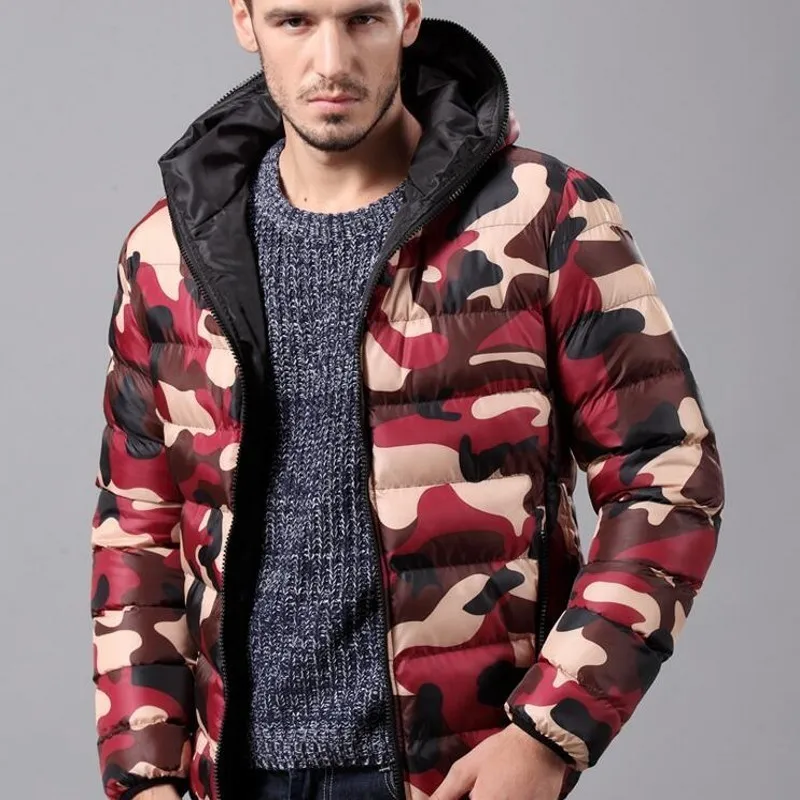 Отзывы о Мужские модные камуфляжные парки с капюшоном короткий пуховик повседневное