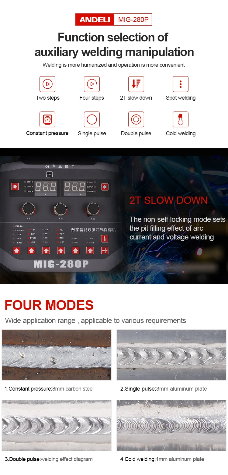 ANDELI умный сварочный аппарат MIG 280P 380В с одним импульсом/двойным - купить