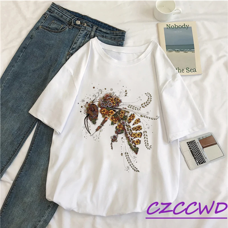 Новинка 2020 эстетическая Женская одежда футболка с принтом в виде пчелы топы - купить