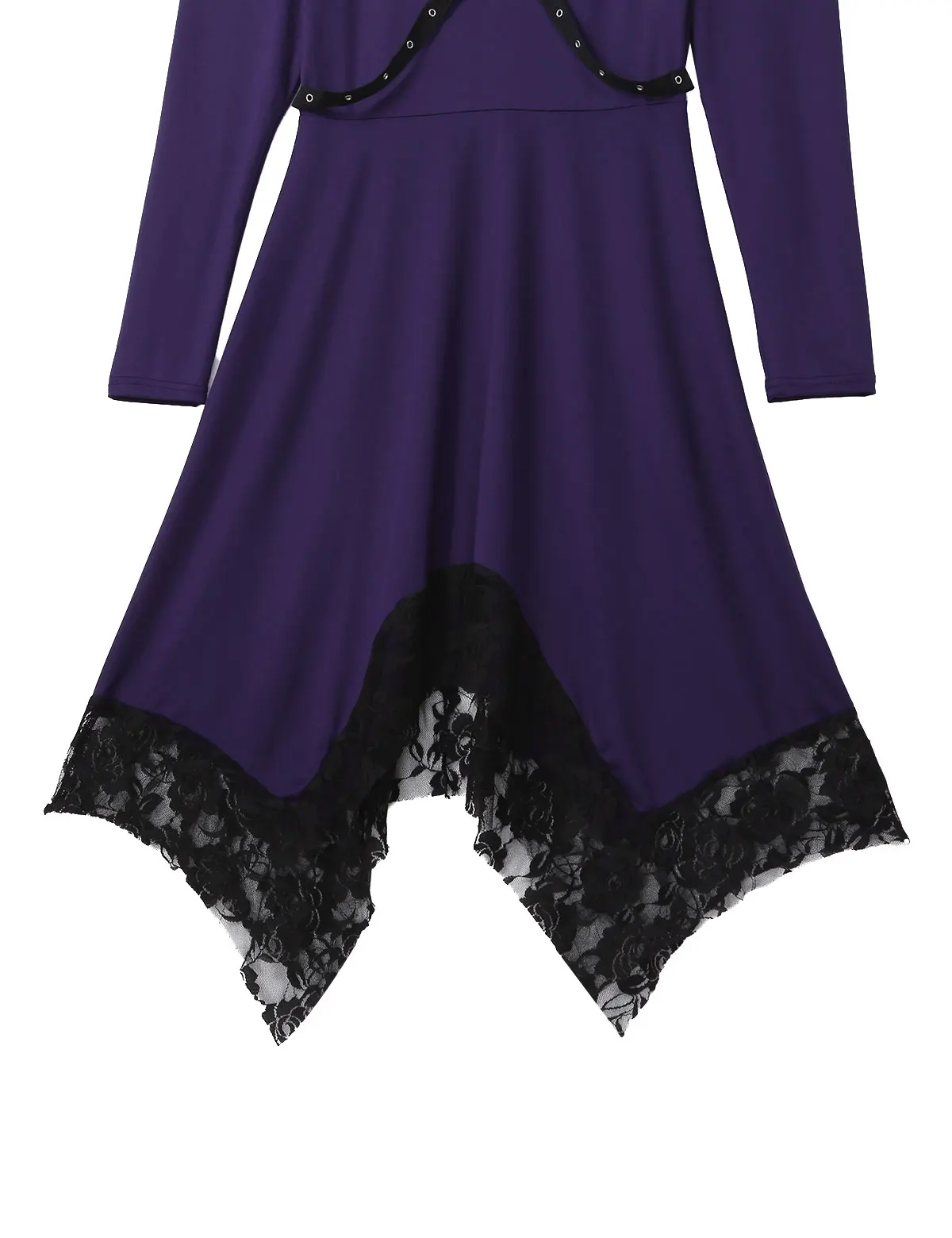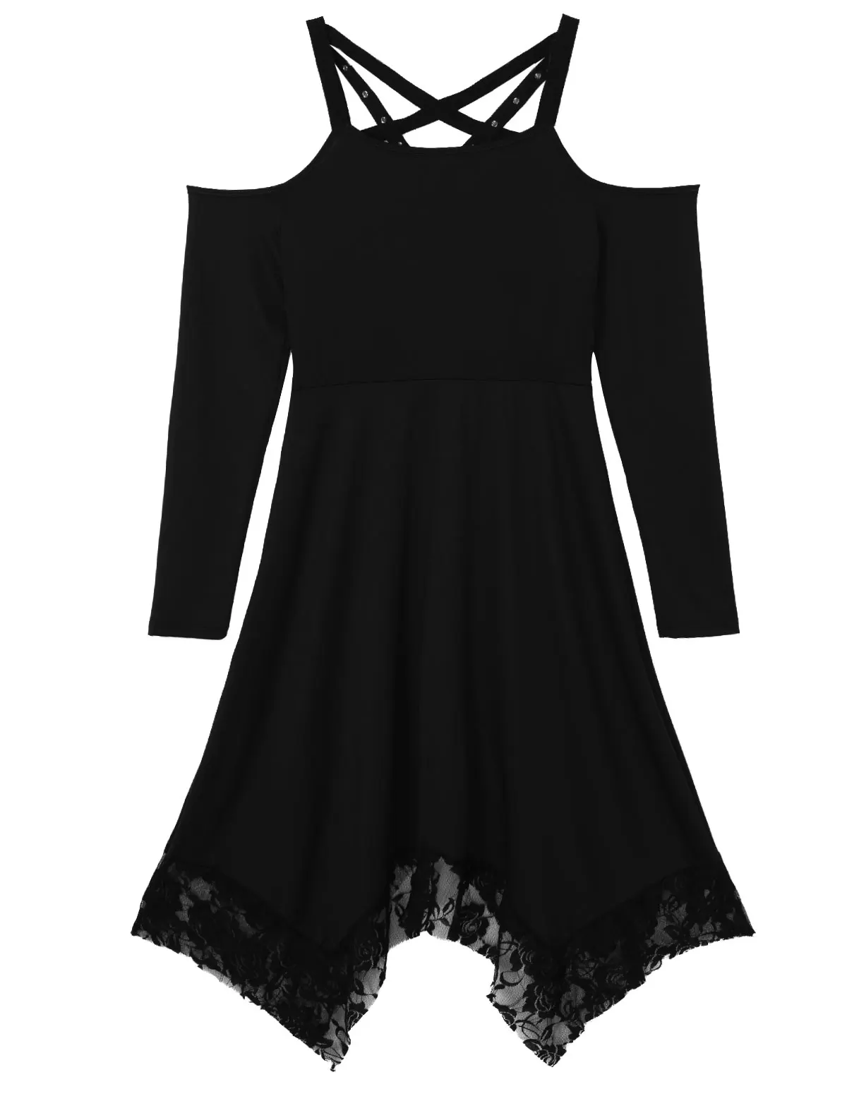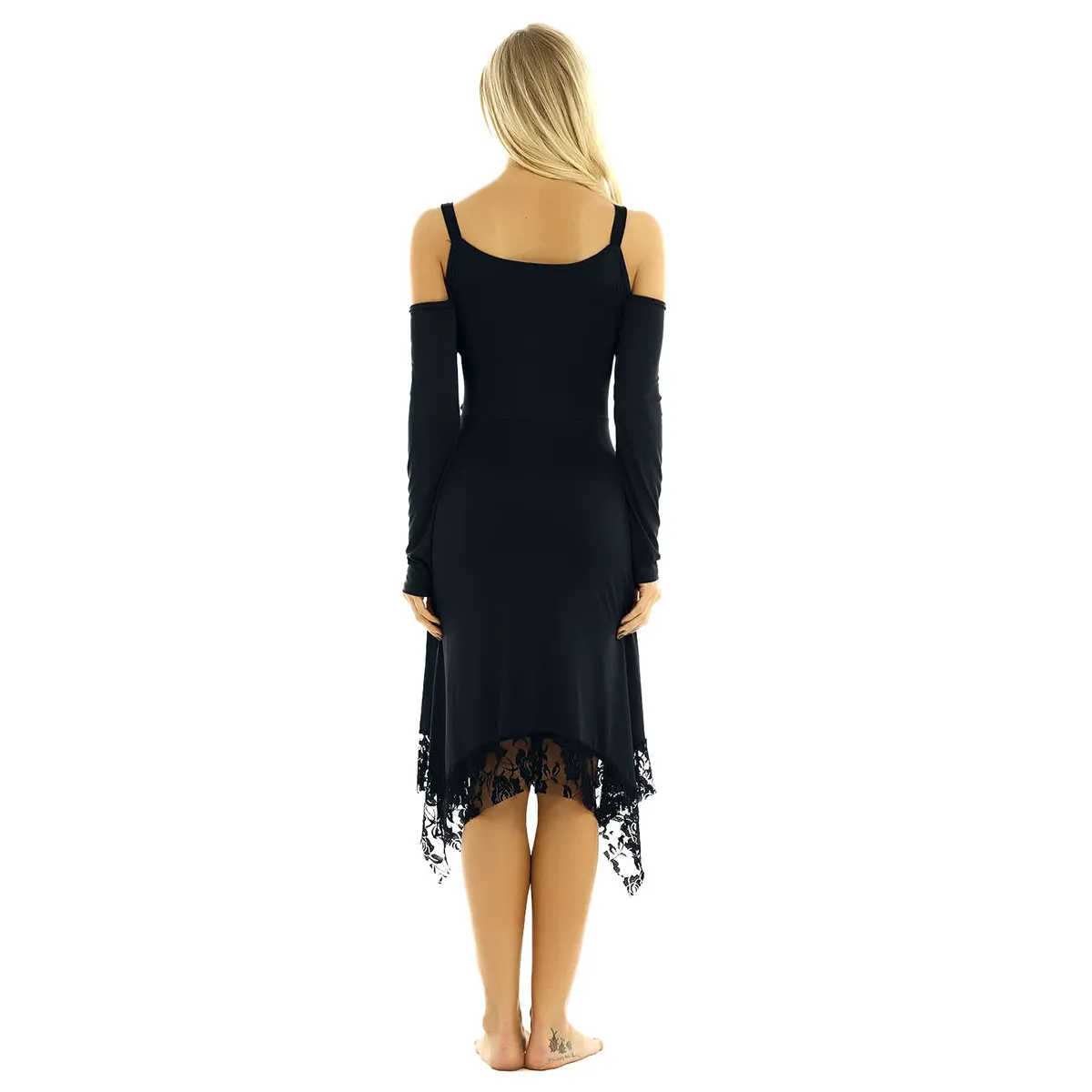 Купить ChicTry Women Long Sleeves Off the Shoulder Irregular Lace Hem Vintage Gothic Ballroom Party Performance Solid Color Dance Dress |