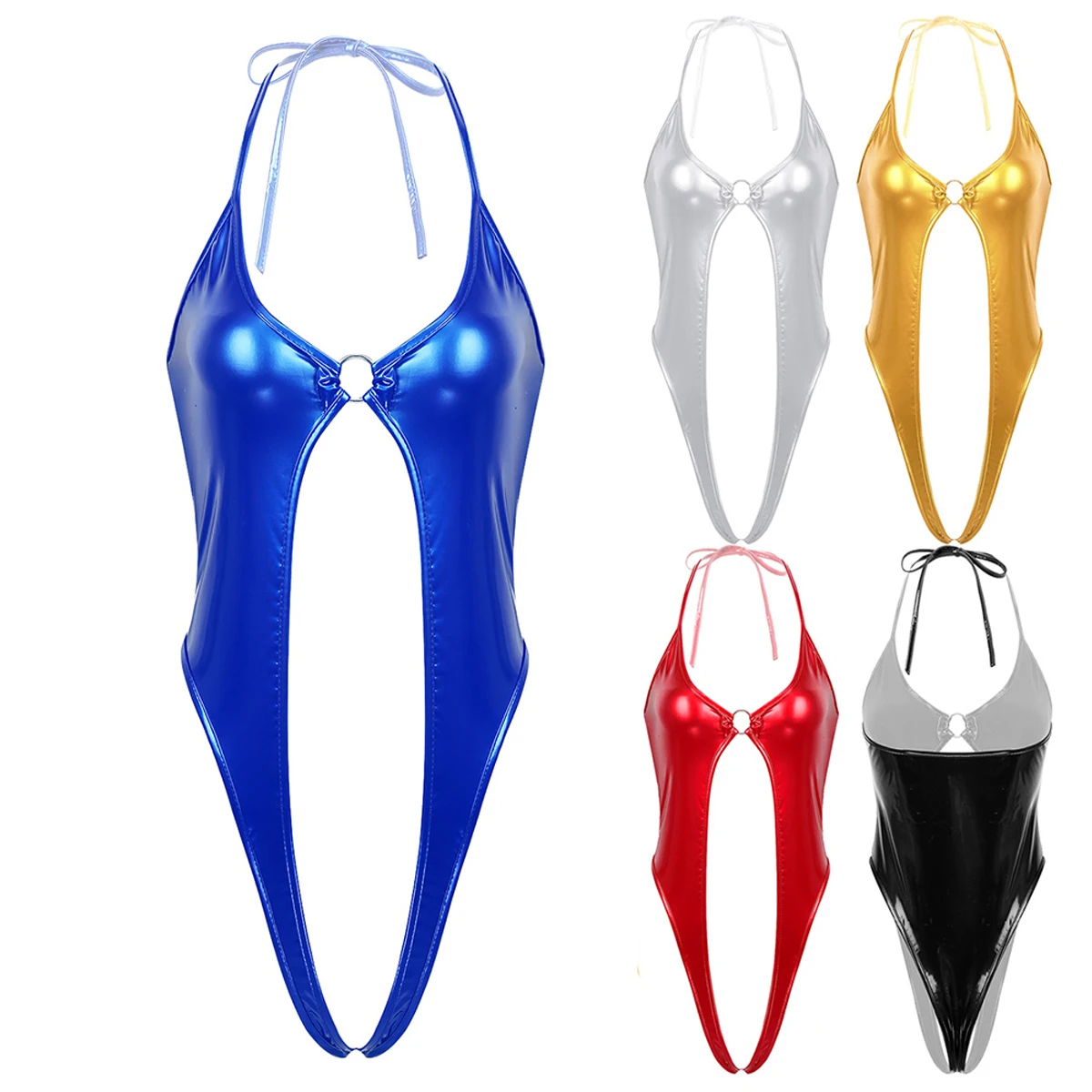 Women’s hot one-piece shiny metallic lingerie thong leotard bodysuit, one size fits most.