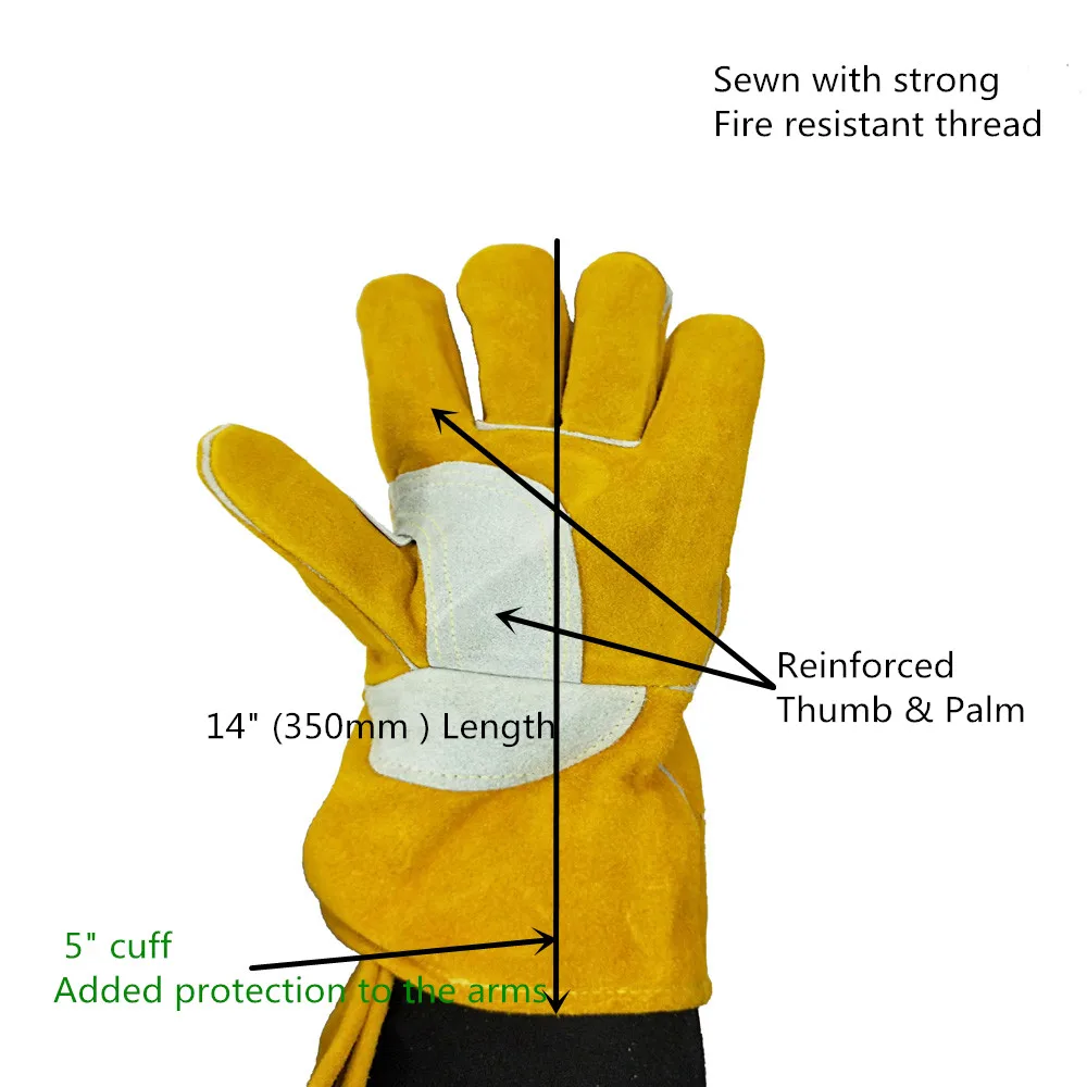 Купить Сварочные перчатки 14 "35 см сварочные из воловьей кожи с усиленной пальмовой