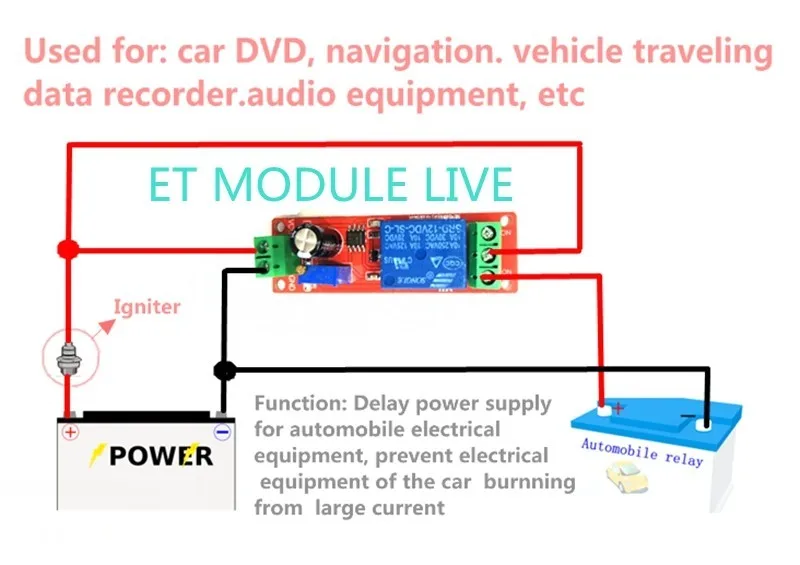 1.power relay delay pull. Specifically:12v power supply to the relay, the relay will not immediately sucked and status relay outputs are normally open disconnected public,normally closed and public conduction,wait until the delay 1-10s (adjustable),the relay suction and, this time, the relay output status is: normally open and public conduction,normally closed and public disconnected; as long as uninterruptible power module, this state will remain.