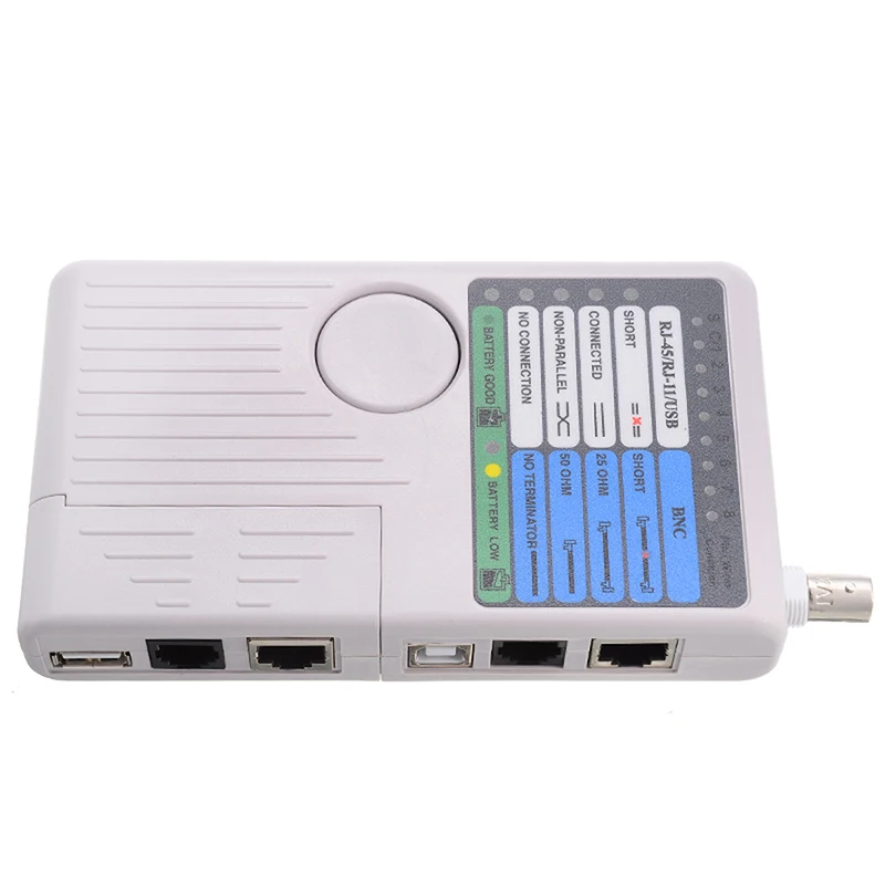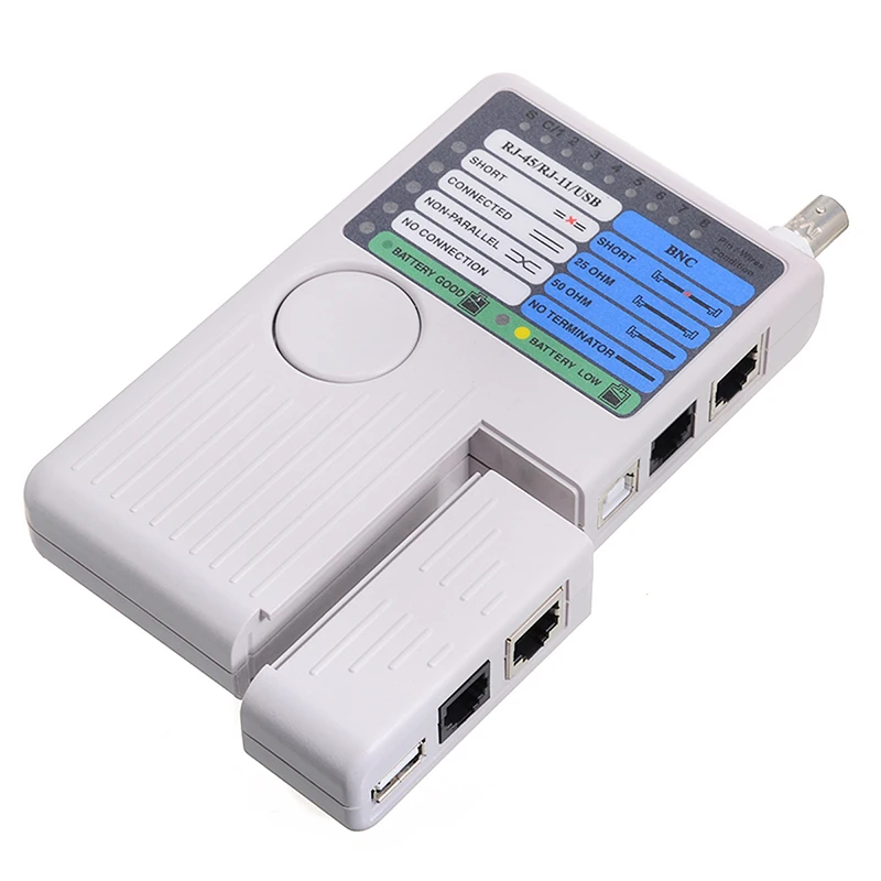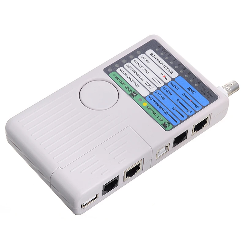 Многофункциональный, можете тесты 4 типов кабелей: RJ-45, RJ-11, USB и BNC.