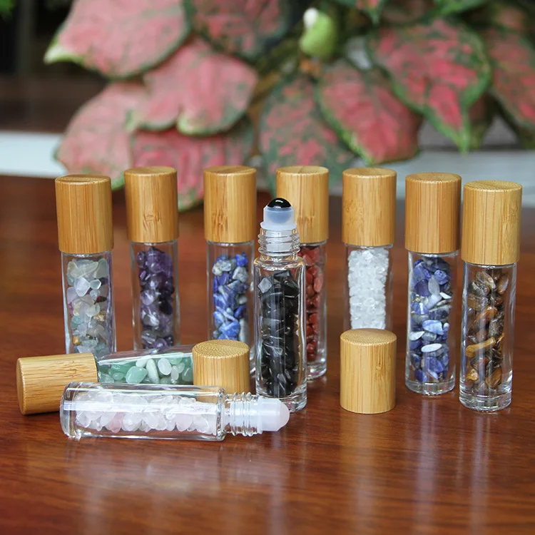 10 мл стекло, кристалл, камень эфирные масла массажные роликовые бутылки пустые многоразовые драгоценные камни рулон на флакон духов с бамбуковой крышкой