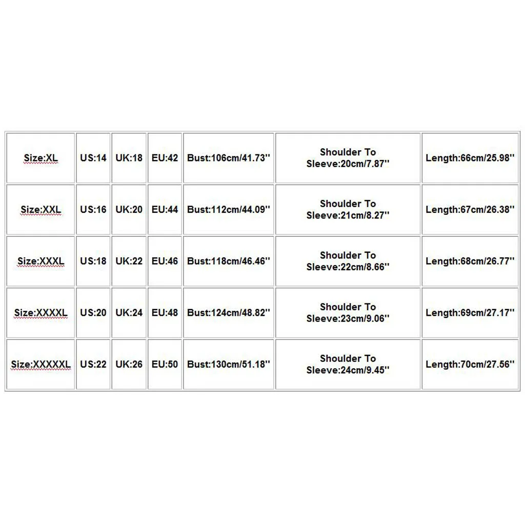 Что вы получаете: 1 шт., женские топы| Размеры | Свяжитесь с нами | Великобритания | ЕС | Обхват груди | От плеча до рукава | Длина |