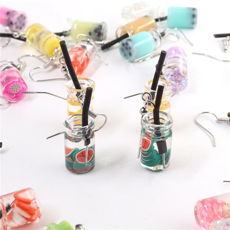 Купить Серьги-подвески женские в виде фруктов молока чая напитков | Украшения и