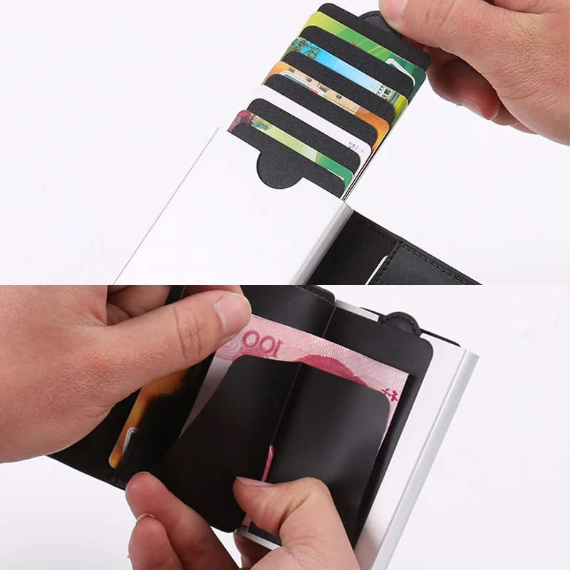DIENQI Rfid Выдвижной Держатель для карт мужские кошельки тонкий металлический - купить