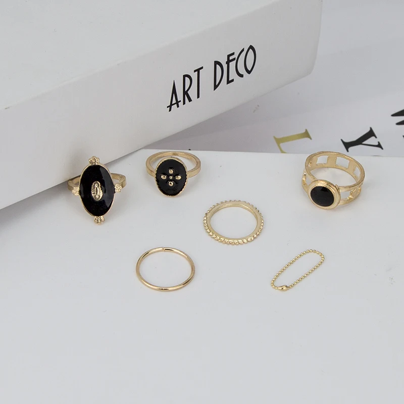 Кольца XIYANIKE 6 шт./компл. винтажные золотистые кольца для женщин черные капающие - купить