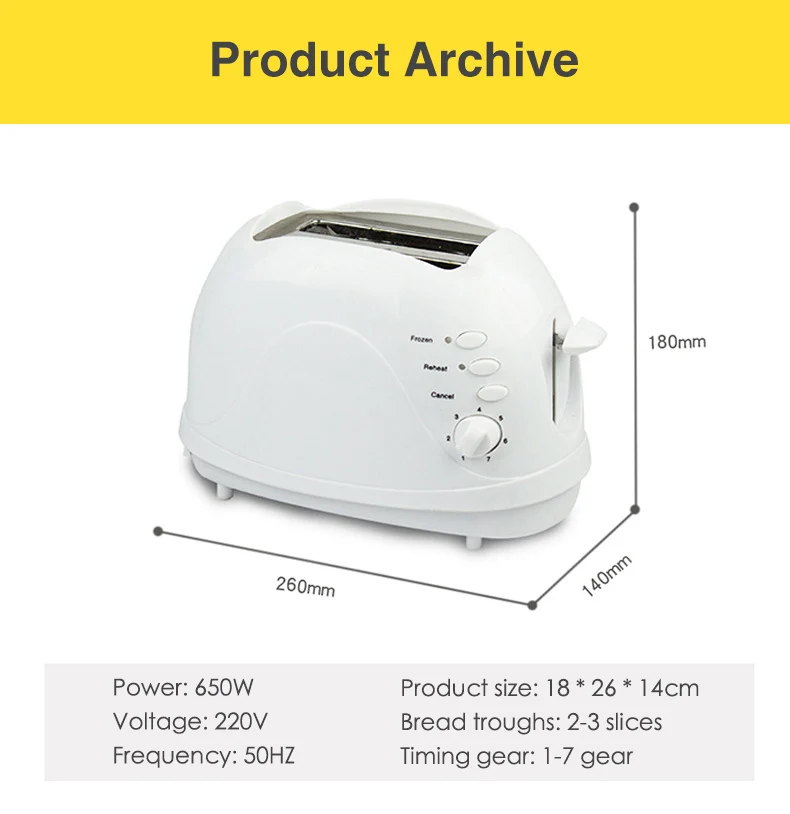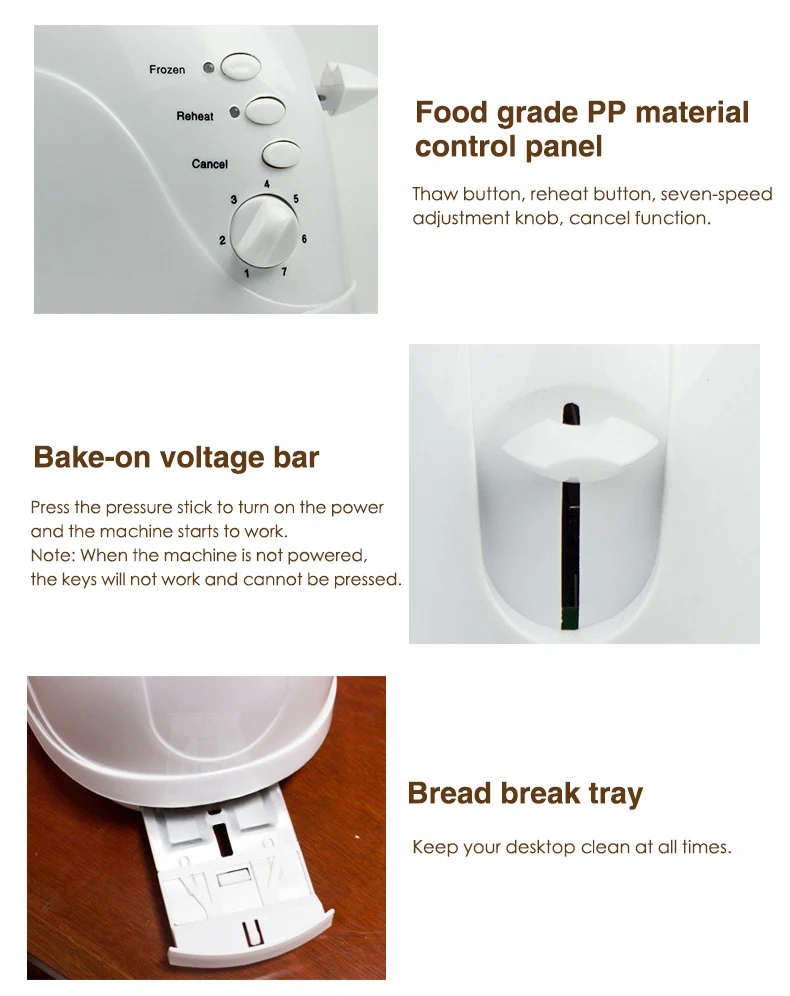 Модель: CT-819 Мощность: 650 Вт Размер изделия: 18*26*14 см Напряжение: 220 В 50 Гц Корыта для хлеба: 2-3 ломтика Зубчатая передача: 1-7 зубчатых передач