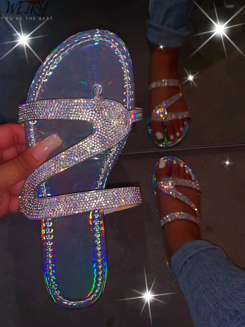 Женские сандалии с яркими бриллиантами пляжные Нескользящие для отдыха и - купить