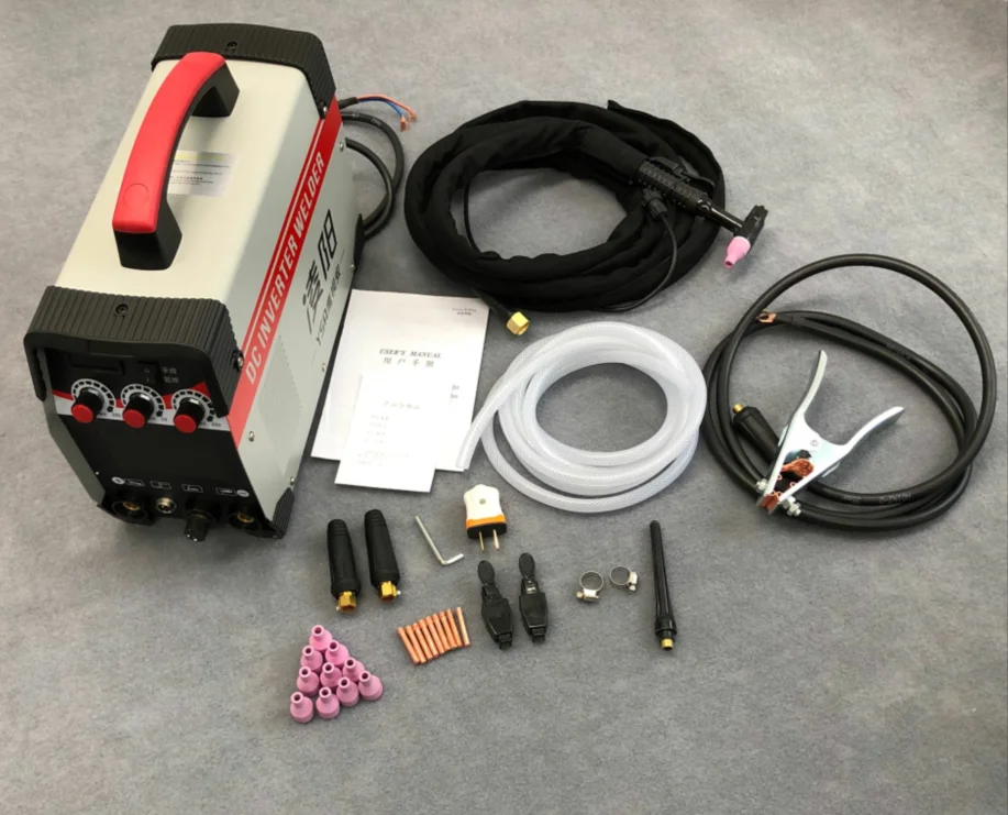 Посылка C: 1 шт. Электрический сварочный аппарат 1 шт Аргон дуговой сварки факел 4 м 1 шт. сварочный колпачок Фарфоровый рот 10 шт. Вольфрамовый игольчатый зажим 10 шт. 2 шт. переключатель фонаря 1 шт трахея 3 м 1 шт провод заземления 2 м 2 шт. хомут для шланга 2 шт. быстрый разъем 1 шт. гаечный ключ 1 шт. крышка 1 шт. Вилка питания 1,63 Вольфрамовая игла в коробке Сварочный зажим 1 шт. 1 шт сварочная проволока 5 м 1 шт. перчатки 1 шт. измеритель аргона Сварочный стержень 1 шт.