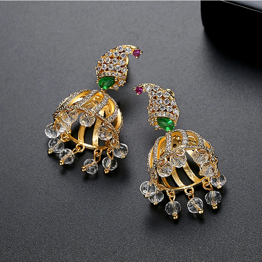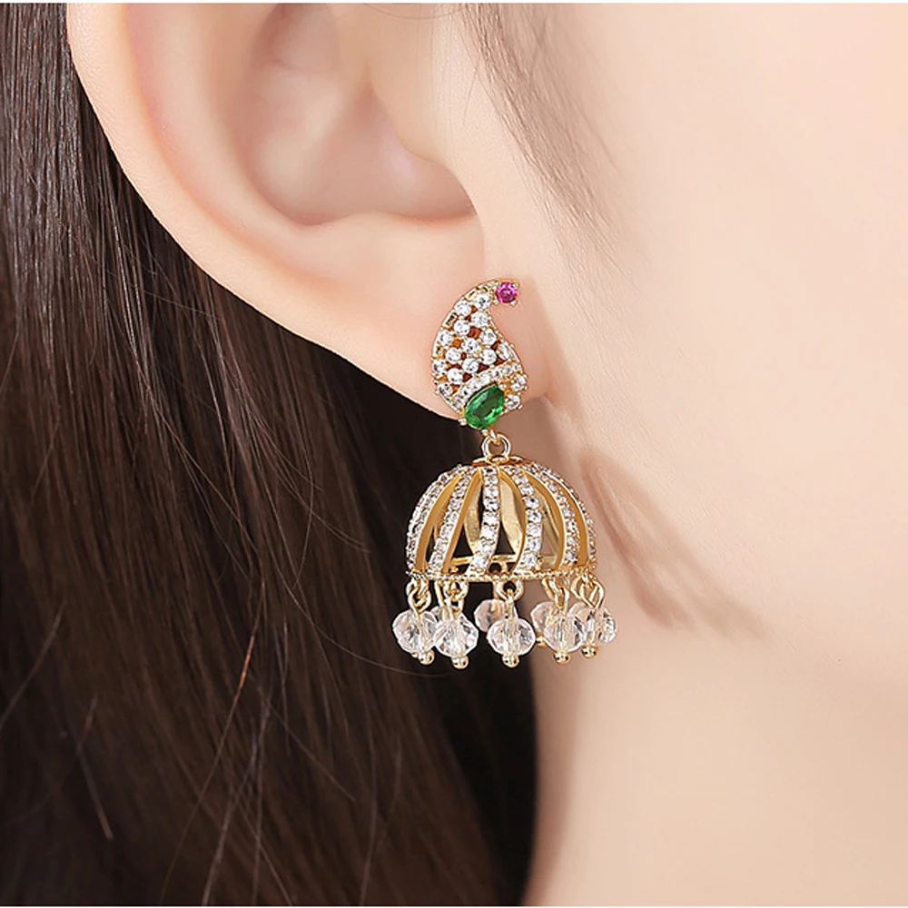 Висячие серьги в стиле ретро Jhumka индийские свадебные с кристаллами циркона - купить