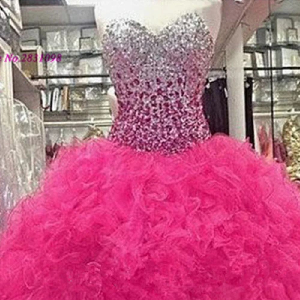 Купить Ball Gown Luxury Fushcia Crystals Quinceanera Dresses 2020 Sweetheart Lace up Back Cheap Sweet 16 Dress Gowns Ruffles Masquerade | Свадьбы и