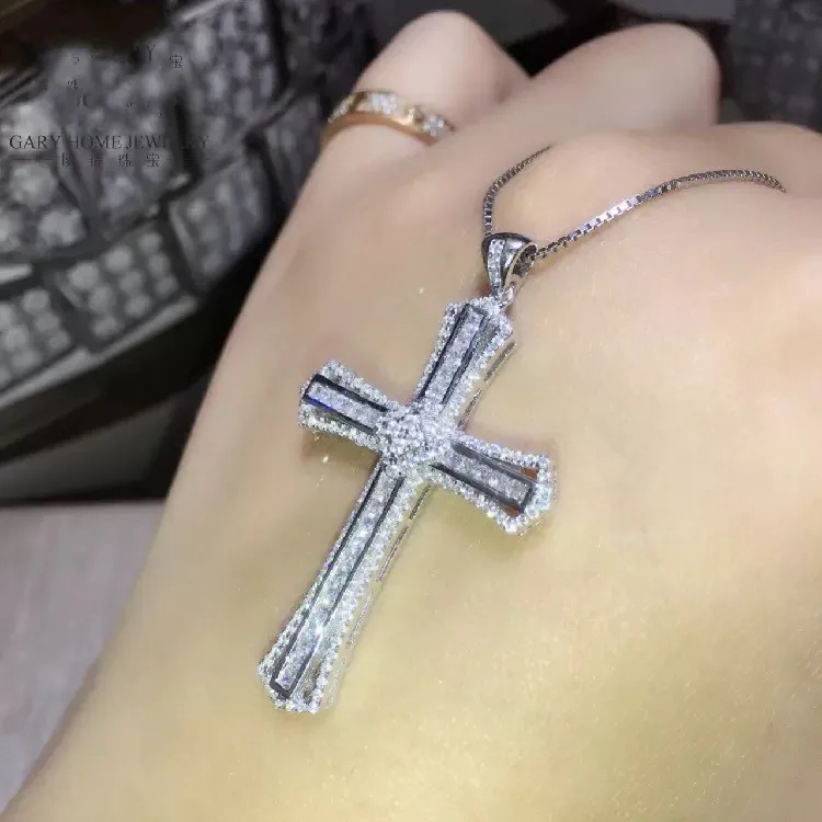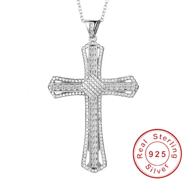 Массивный кулон в виде креста с бриллиантами 925 пробы серебро цепочкой крест - купить