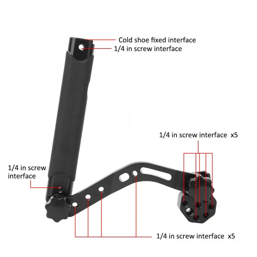 1. Складной для хранения, не нужно разбирать, удобно носить с собой.2. В соответствии с сценой съемки, чтобы расширить микрофон, заполняющий светильник и т. д. Несколько винтовых интерфейсов предназначены для расширения.