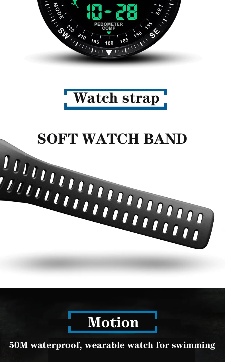PASNEW Watch Для мужчин спортивные часы с ЖК-дисплеем 50 м Водонепроницаемый - купить