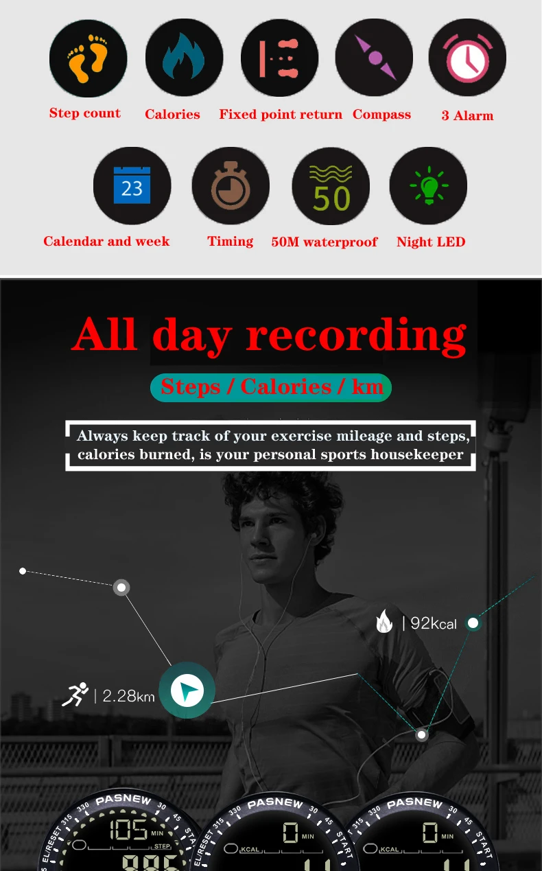 Отзывы о PASNEW Watch Для мужчин спортивные часы с ЖК-дисплеем 50 м Водонепроницаемый