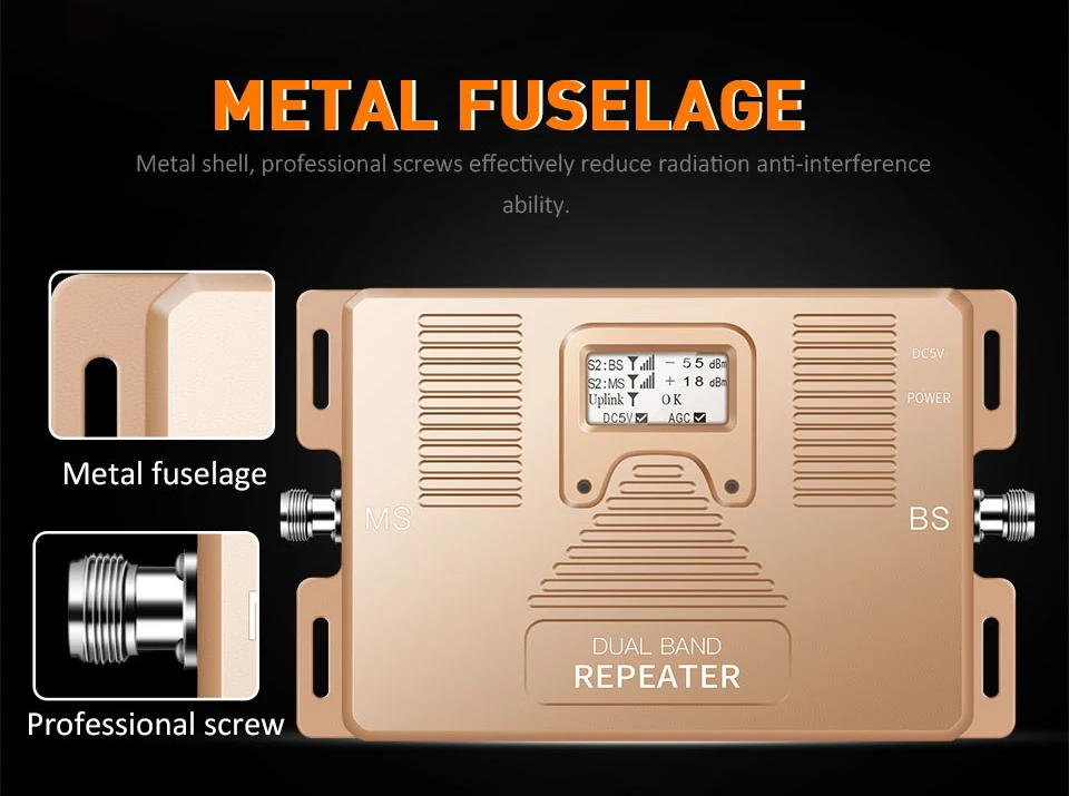 1. Интеллигентая (ый) дисплей реальная мощность сигнала на улице и в помещении. 2. Встроенный высокоскоростной цифровой ALC системы, может обнаруживать ошибки установки. 3. Автомотическая, чтобы напомнить о ошибки установки, попрощайтесь с установка. 4. Устройство будет автоматически переходит в режим сна при пользователя не сделать вызывающего абонента. 5. Металлический кожух, профессиональный винты эффективно уменьшается потеря теплого излучения анти-помех. 6. Сертификаты CE и по ограничению на использование опасных материалов в производстве сертификат. 7. Полный комплект, включающий в себя наружная антенна, Внутренняя антенна и 2 кабеля. Легкая установка.