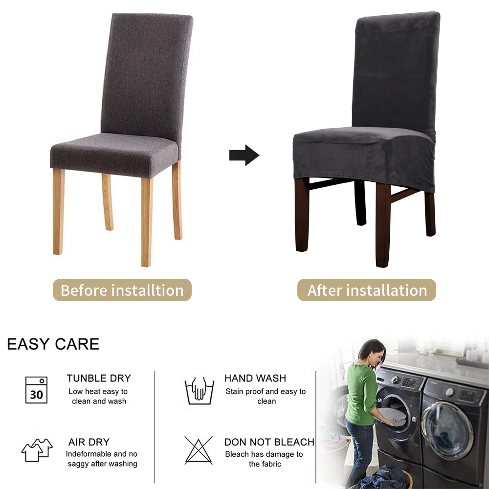 Простота установки: легко установить чехол на стул благодаря высокой эластичности. Также очень легко снять его со стула, легко для ежедневной замены.